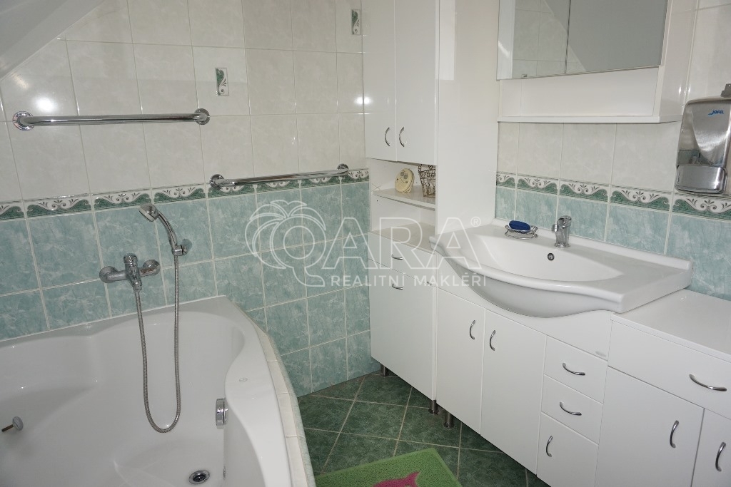 S přáním pěkného dne Vám nabízíme k prodeji rodinný dům 5+kk s garáží, balkónem a zahrádkou v klidné lokalitě Hrochova Týnce. Do domu se vchází přes vstupní předsíň se vstupy do koupelny s WC, kanceláře a dále do prostorného obývacího pokoje propojeného s kuchyní, kde se nachází také samostatná spíž, schodiště do patra domu, výstup na zahradu a v neposlední řadě kachlová krbová kamna. V patře domu jsou celkem tři obytné pokoje, koupelna, WC. Pokoj umístěný východním směrem má vlastní samostatnou šatnu a také balkón. Vše ve výborném stavu, nabízeno včetně vybavení. Vedle domu navazuje garáž, která má vstup také ze zahrady. Pozemek kolem domu je rovinatý, osázený ovocnými stromy, záhony a z velké části též zatravněný. Technicky se jedná o velmi precizně provedenou stavbu z bloků Heluz, která je zateplena. Vytápění plynovým kotlem umístěným v horním WC, případně krbovými kamny. Výhodou domu je, že je celý napojený na vodu z vlastní studny a také na městský vodovod. V rámci úspory se používá voda z městského vodovodu v kuchyni a v koupelnách a na WC ze studny. Celkově se jedná o objekt ve stavu novostavby ve velmi příjemné čtvrti rodinných domů s velmi mírným dopravním provozem vhodný k okamžitému bydlení či kombinaci s podnikáním. Možnost financovat hypotečním úvěrem, se kterým Vám velice rádi pomůžeme.