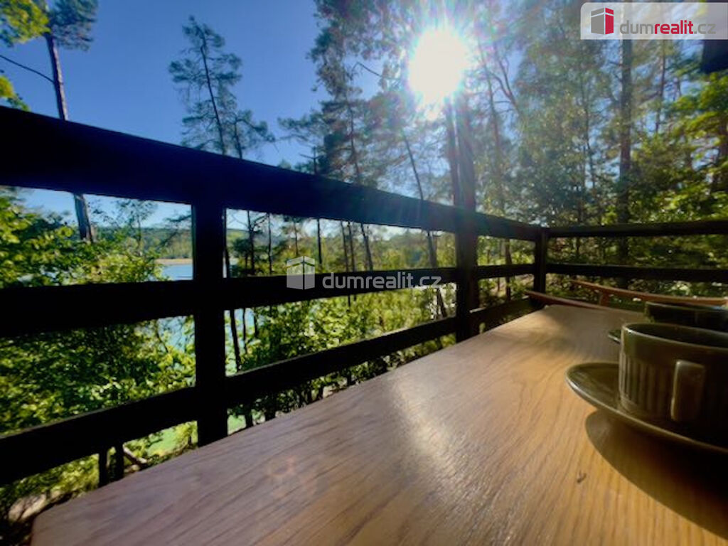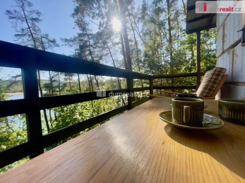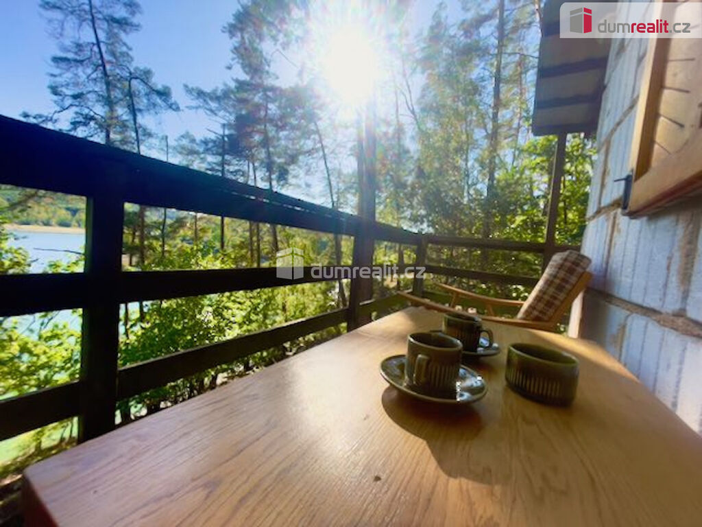 Terasa, balkon i okna orientovány na jih, výhled k přehradě.