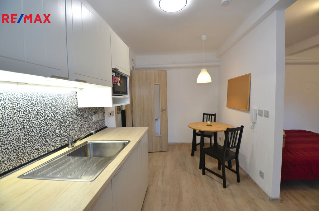 Nabízíme vám k pronájmu zařízenou ubytovací jednotku v centru města Olomouce na ulici Marie Pospíšilové. Jednotka o dispozici 1+kk s předsíní a se samostatnou koupelnou se sprchovým koutem a WC je po kompletní, velmi zdařilé rekonstrukci, se nachází v suterénu bytového domu v blízkosti olomouckých parků a výstaviště Flora. Okna jsou orientována na severovýchod, do dvora. Jednotka je kompletně vybavena spotřebiči (indukční dvouplotýnkový vařič, cirkulační digestoř, lednice, pračka s horním plněním) a nábytkem viz fotografie. Vytápění je zajišťováno elektrickým podlahovým topením, ohřev vody obstarává elektrický bojler. Větrání jednotky je zajištěno nejen pomocí oken, ale i pomocí rekuperace.