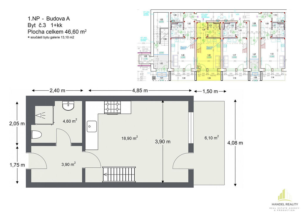 Nabízíme krásný byt 1+kk k prodeji v Břeclavi. S plochou 44,6 m² poskytuje dostatek prostoru pro pohodlné bydlení pro jednotlivce nebo pár. Byt se nachází v přízemí a disponuje moderním a útulným interiérem, je také vybaven vlastní klimatizací, tím zajistí příjemné a komfortní prostředí po celý rok. Vzhledem k výšce stropu, která činí 4,5 m na bytu naleznete i galerii, která je určená například pro vybudováno ložnice. Dále byt disponuje terasou o velikosti 5,5 m². K bytu přináleží kóje s vlastní přípojkou elektřiny.