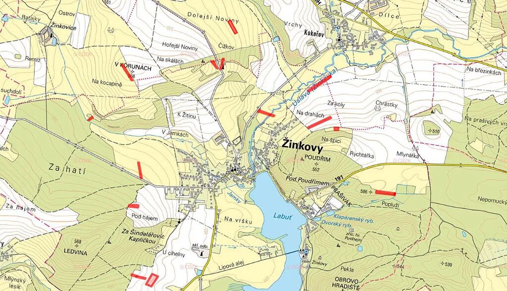 k.ú. Žinkovy, list vlastnictví 166: 164/20, 164/28, 164/37, 223/7, 299, 357/3, 423, 424, 651, 657, 852, 980, 1140, 1305, 1316 a 1317