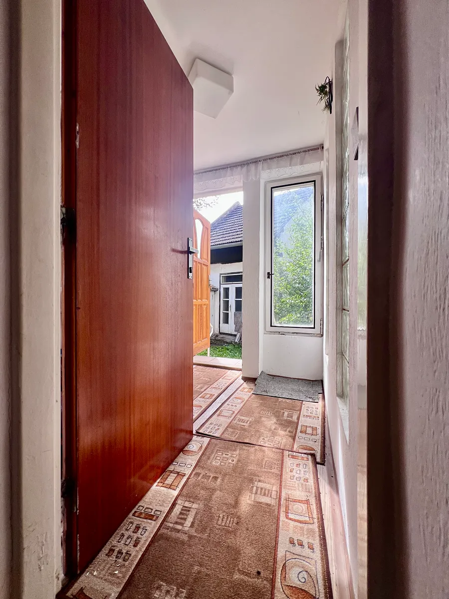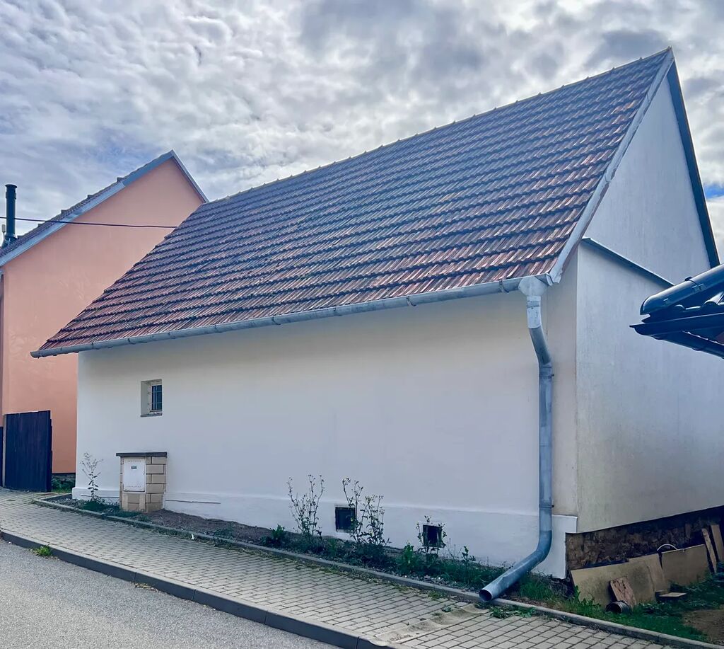 Dům má již za sebou několik důležitých oprav a investic. Byla zateplena štítová zeď směrem k sousedům, kde byla použita kvalitní minerální vlna ORSIL, a zároveň byla položena nopová fólie pro ochranu proti vlhkosti. Vodovodní a kanalizační přípojka byla obnovena před čtyřmi lety. Elektřina je vedena v hliníku, což je u domů této generace běžné. To hlavní – základy jsou pevné a dům je připraven na další úpravy podle vašeho vkusu a potřeb.