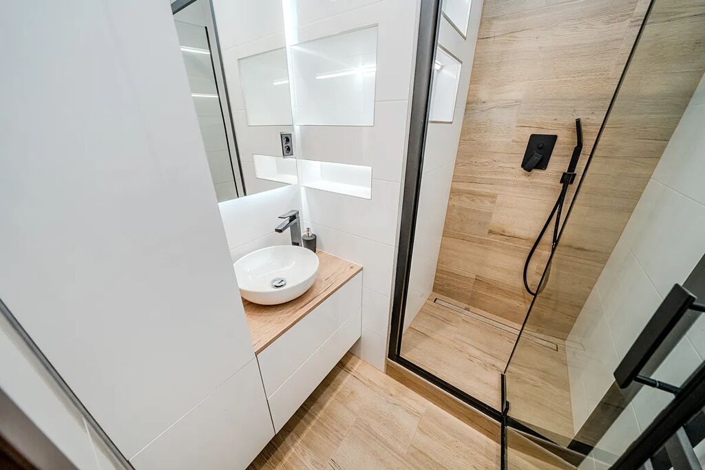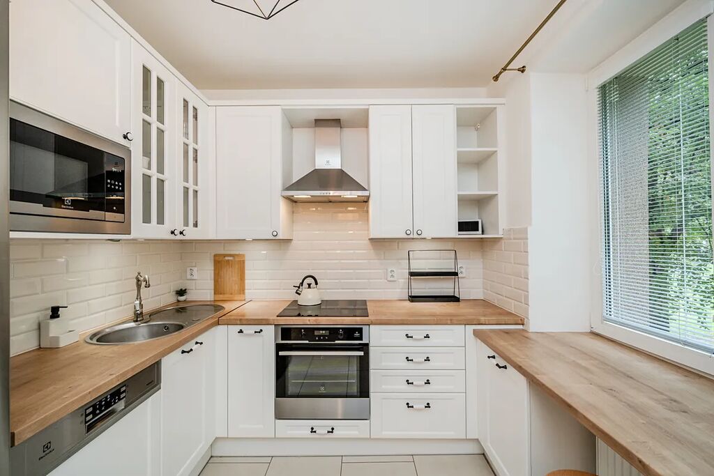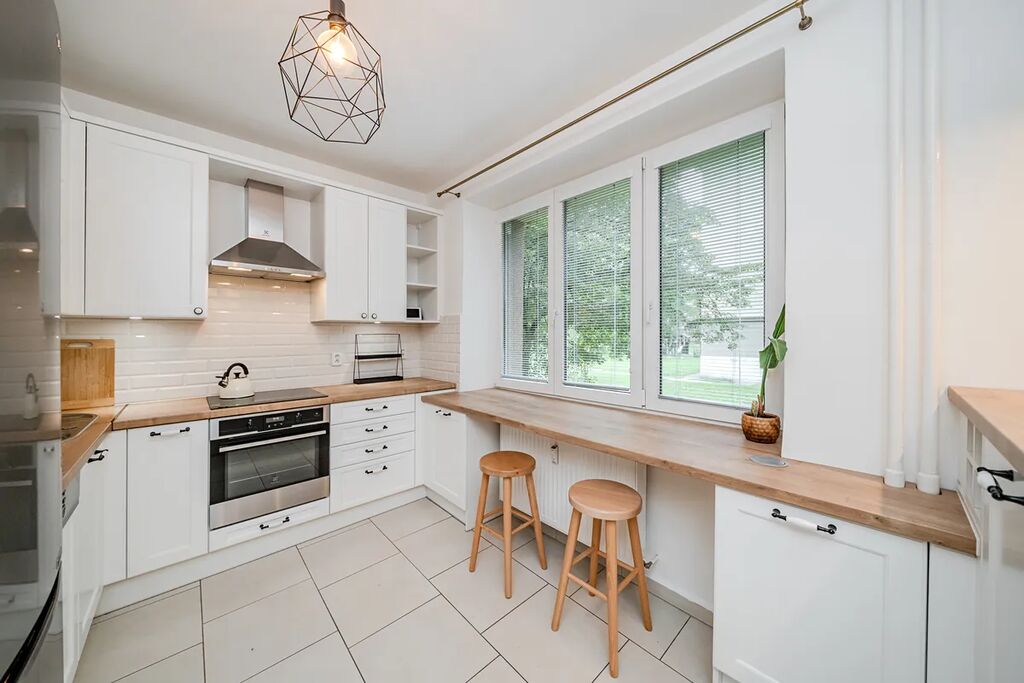 Byt prošel v letech 2017 až 2022 nákladnou rekonstrukci a byl obýván minimálně. V části bytu jsou nové rozvody elektra, podlaha je pokrytá dlažbou, plovoucí podlahou a kobercem. V chodbě a ložnici se nacházejí prostorné, vestavěné šatní skříně. Jsou zde sádrové omítky (s vyjimkou ložnice), nové dveře i zárubně.V části bytu jsou snížené stropy se zabudovaným osvětlením. Jádro je zděné. Koupelna je v moderních obkladech, s sprchovým koutem a umyvadlem. Toaleta je samostatná. Vedle toalety je zděná komora. Dominantou bytu je prostorná kuchyně s linkou na míru a vestavěnými spotřebiči (indukční varná deska, myčka, digestoř, varná trouba – vše Electrolux. Lednice je značky LG). Kuchyně je opravdu prostorná, s velkými úložnými prostory a stolem. Kuchyni od obývacího pokoje odděluje ostrůvek. Obývací pokoj je prostorný a je průchozí s ložnicí. Dětský pokoj je samostatný. V chodbě a kuchyni se nachází velkoformátová dlažba. Byt je laděný do světlých, moderních tónů. V chodbě je dostatek prostoru, který byl využit na vestavěnou šatní skříň i botník. K bytu patří prostorný, zděný sklep.