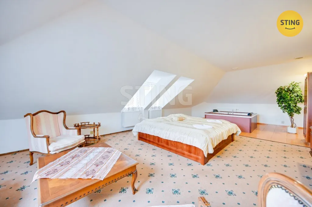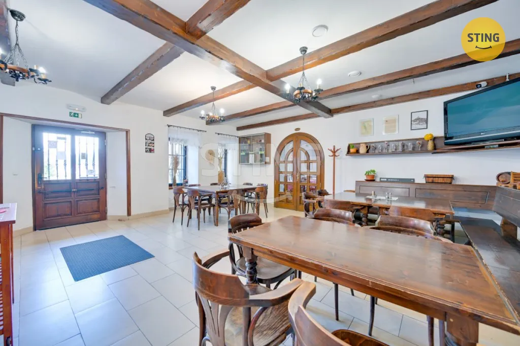 Jedna místnost, náležící k zázemí a disponující vlastním vchodem a částí terasy, nabízí možnost přebudování na menší kavárnu / cukrárnu i se samostatnou recepcí pro hotel.