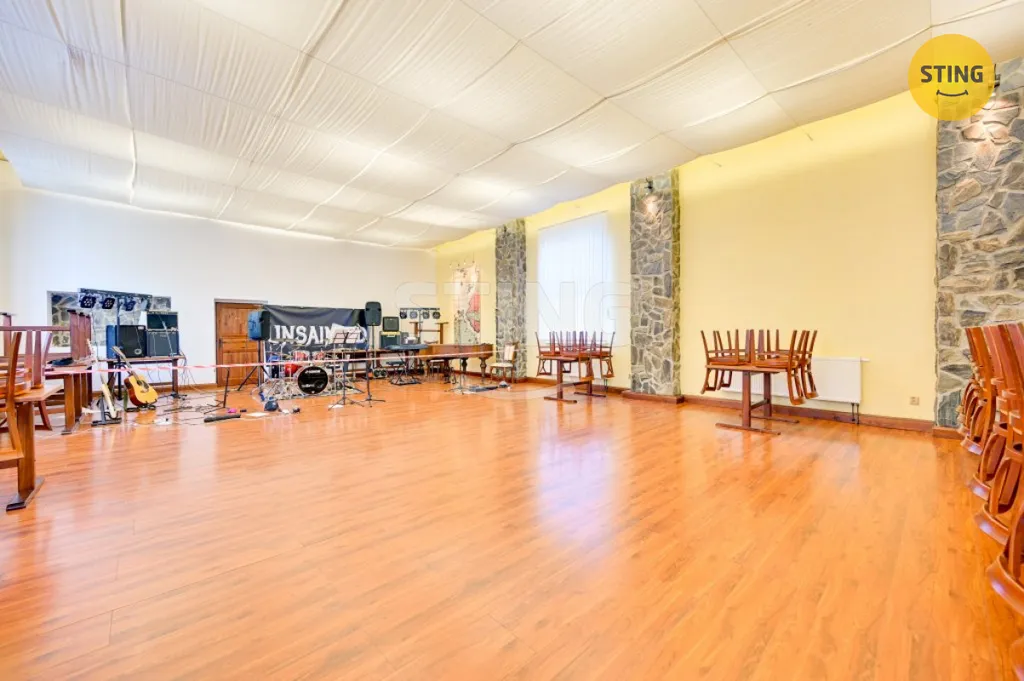 Součástí budovy jsou i pokoje a vlastní zázemí pro personál a administrativní místnost/kancelář. Dále je k dispozici dílna, kůlna, hospodářská budova a prostory sklepů, které jsou ideální např. pro skladování pivních sudů.