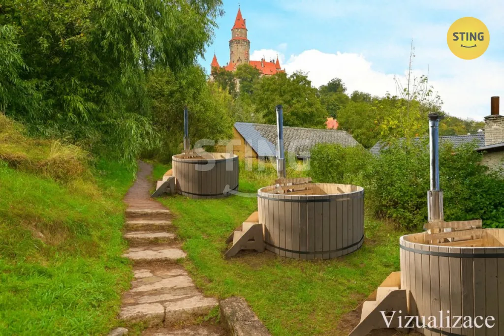 K objektu patří také prostor zahrady, kde se nachází multifunkční plocha s umělým povrchem, která slouží jako kurt pro tenis, volejbal, nohejbal, nebo basketbal. Také zde bylo plánováno a stále je možné vybudovat venkovní wellness ve formě odpočinkové zóny např. s koupacími sudy s vířivkou, nebo menším bazénem s protiproudem, s jedinečným pohledem přímo na hrad.