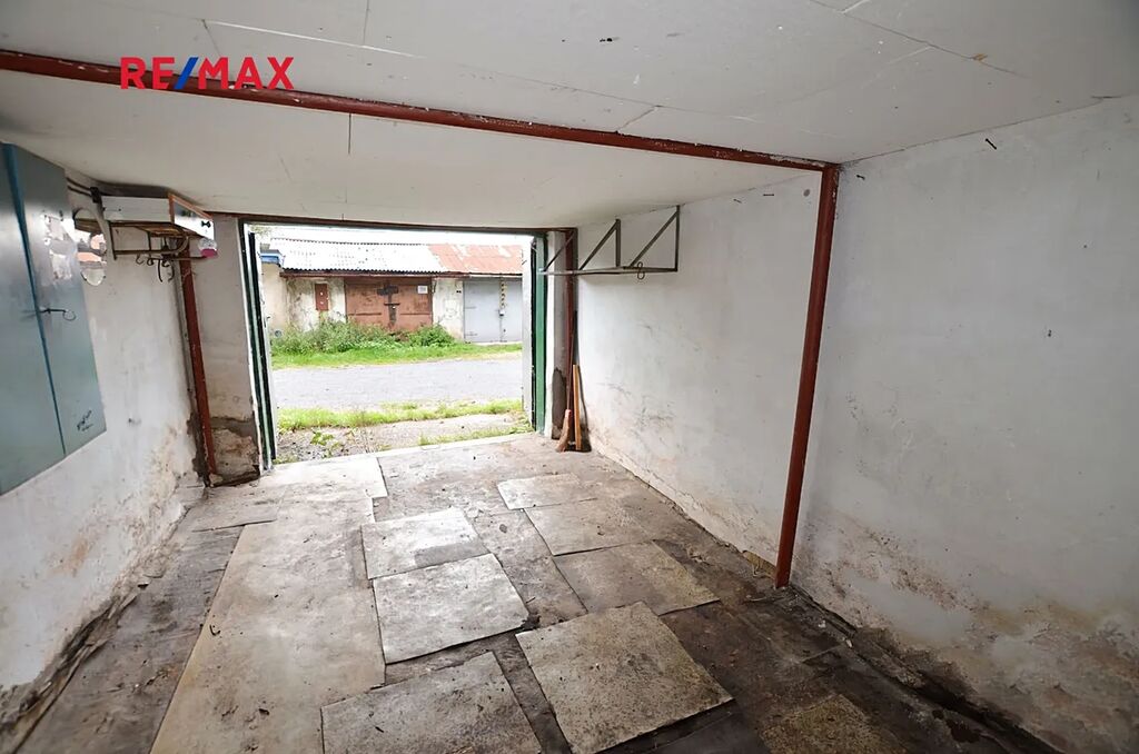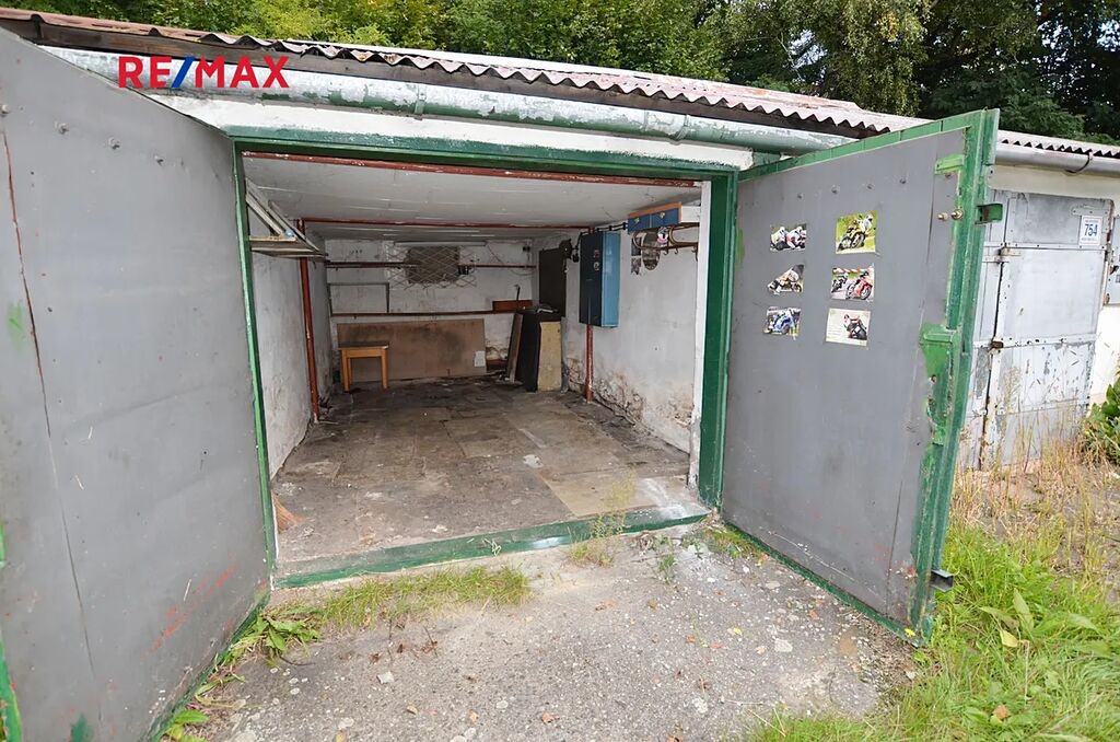 Dvoukřídlá dřevěná vrata (šířka 2,24m x výška 1,80m) se dvěma Tokoz bezpečnostními zámky a kováním. Střecha sedlová, s trámovou konstrukcí, s vnitřními železnými výztuhami, krytina pozink.plech, podlaha betonová stěrka, podhled výška 1,85m, zateplený polystyrénem 15mm. Vnitřní rozměry: šířka 2,85m x délka 4,95m. Pozemek pod stavbou součástí nemovitosti ve vlastnictví. Přístup k nemovitosti je po obecní komunikaci. Prohlídka je možná po dohodě.