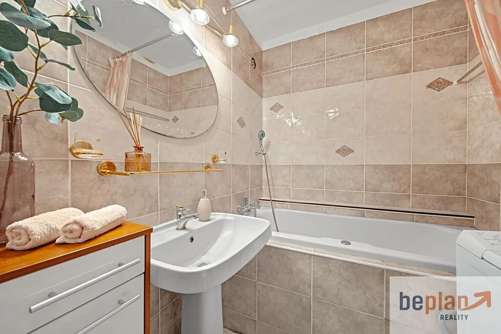 Byt má dvě koupelny (jedna s vanou, druhá se sprchou) a samostatné WC.
