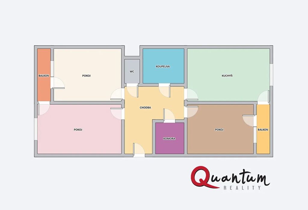 Vzhledem k celkové užitné ploše je byt velmi dobře dispozičně rozdělen a nechybí zde ani praktická komora k uložení všeho potřebného. Kompletně vybavená kuchyňská linka.