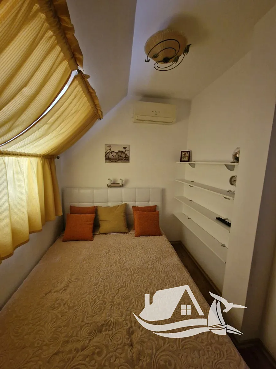 Tento mezonet je prostorný a útulný zároveň, nabízí strategickou polohu – blízko moře i centra dění, ale přitom klidné a bezpečné zázemí v areálu.