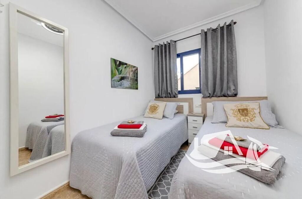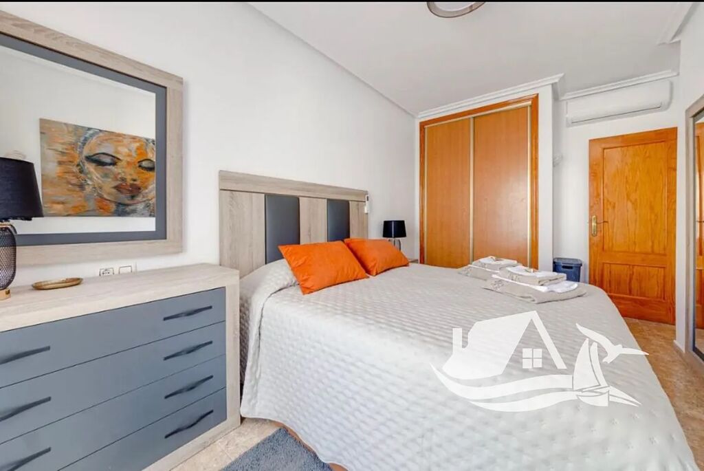 Dispozice tohoto nádherného penthousu v Cabo Roig je navržena tak, aby vám přinášela každý den radost a pohodlí – jako kdyby dovolená nikdy neskončila. Po vstupu vás přivítá světlý obývací pokoj, kde přes velká francouzská okna proudí ranní slunce a odkud se otevírá přímý vstup na hlavní terasu s dechberoucím výhledem na moře – ideální místo pro ranní kávu i večerní víno. Kuchyň je plně vybavená a otevřená do obývací části, takže vám umožní vařit a zároveň zůstat v kontaktu s rodinou nebo přáteli. Obě ložnice mají vestavěné skříně a útulnou atmosféru, jako stvořenou pro klidný spánek po dni u moře. Jedna z nich má navíc vlastní menší terasu – váš soukromý koutek na čtení nebo relax. Třešničkou na dortu je velké střešní solárium, odkud se vám otevře panoramatický výhled na moře, pobřeží i španělské slunce – místo, kde se každý den stává výjimečným.