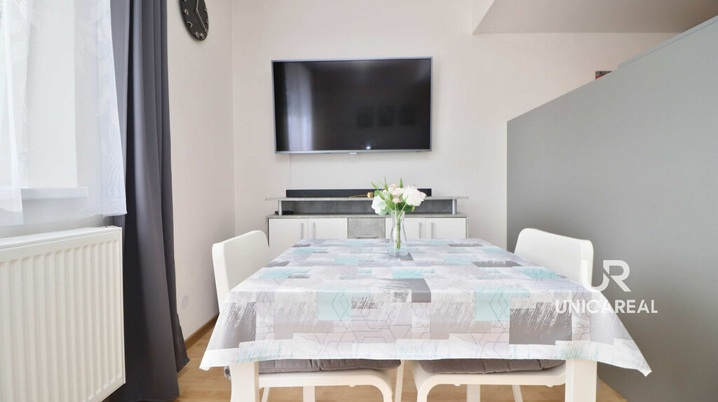 • V přízemí bytu se nachází také koupelna s vanou, sprchovým koutem a toaletou, praktická šatna.