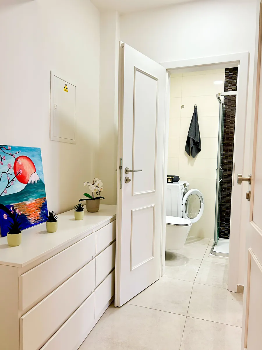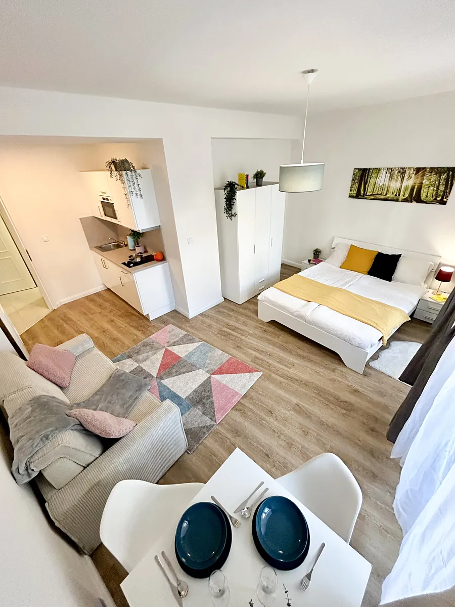 Byt o dispozici 1+kk je plně zařízen a připraven k okamžitému nastěhování. Součástí je kuchyňská linka včetně vestavných spotřebičů, pohodlný rozkládací gauč, jídelní stůl se židlemi, postel, úložné prostory a koupelna se sprchovým koutem. Interiér byl navržen s důrazem na funkčnost a nadčasový design.