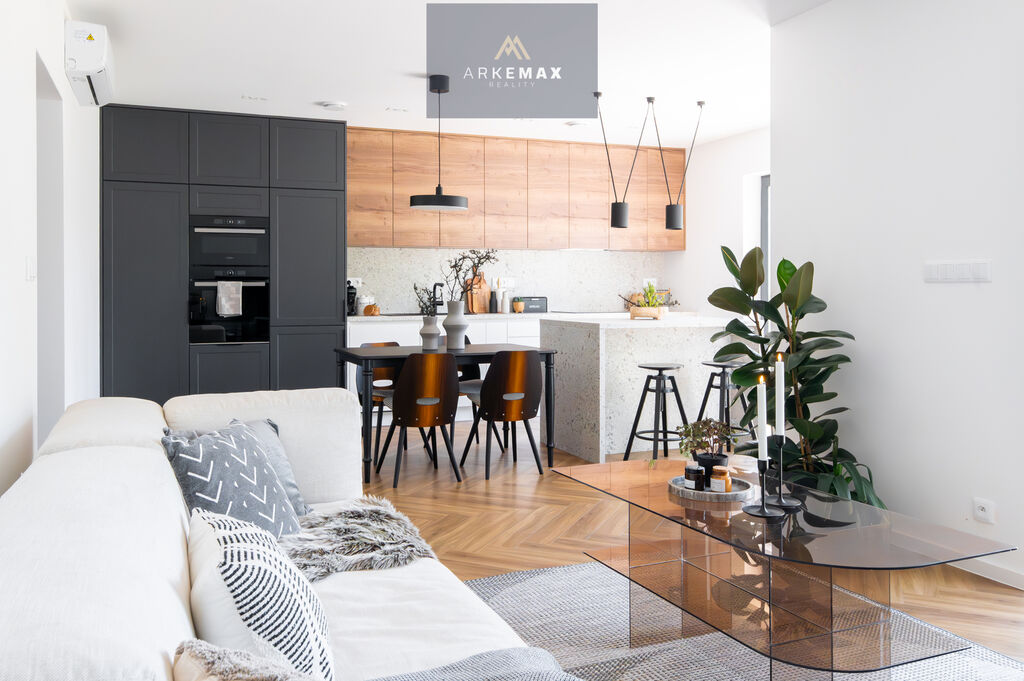 * Prostorná kuchyň spojenou s obývacím pokojem, ideální pro rodinné setkání a společné chvíle.