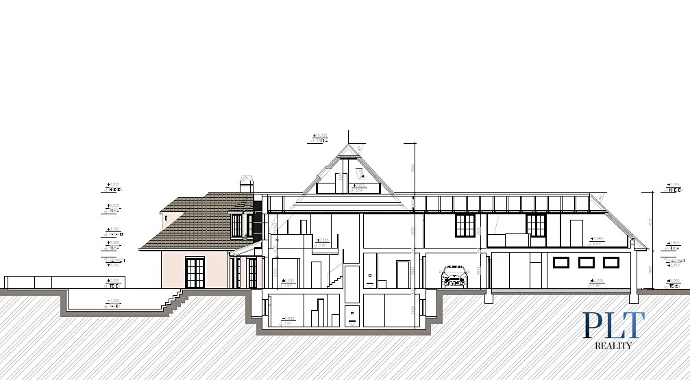 • 1.PP (99,5 m²): vinárna s krbem, posilovna, sklad, technická místnost, WC.