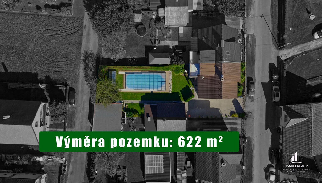 Na pozemku najdete dvě samostatné garáže (jedna s dálkovým ovládáním), prostorné parkovací stání, zastřešené posezení, skleník a velký moderní bazén se slanou vodou o rozměrech 10×4 m. Bazén prošel v roce 2025 kompletní rekonstrukcí – nový bezchlorový systém, elektrický ohřev vody i zakrytí zajišťují pohodlné užívání od jara až do podzimu.