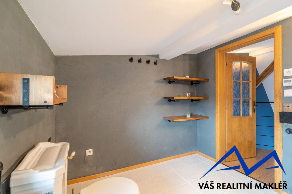 2. patro bytu - obývací pokoj, koupelna s vanou a WC, ložnice, šatna, 2x pokoj, 2x půdní prostor.