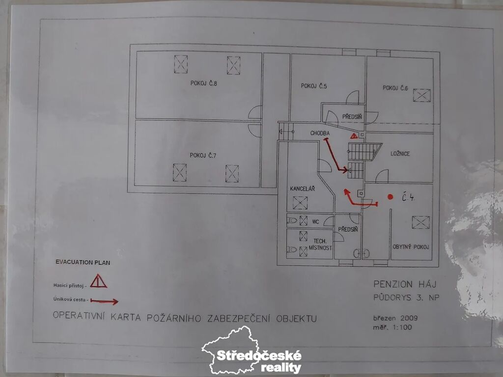 Jedná se o plně zařízenou nemovitost s kapacitou 40 lůžek (10 pokojů), prostorného bytu 4+kk o výměře 80m2 a gastronomického prostoru (kuchyň, bar a jídelna s krbem).