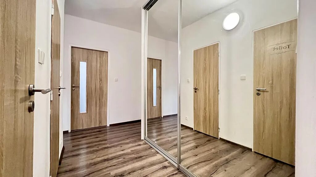 Bytová jednotka se skládá ze dvou samostatných pokojů, kuchyně, koupelny, samostatného WC a prostorné chodby. V chodbě se nachází praktická vestavěná skříň, která poskytuje dostatek úložného prostoru. Obytné místnosti mají moderní plovoucí podlahy.