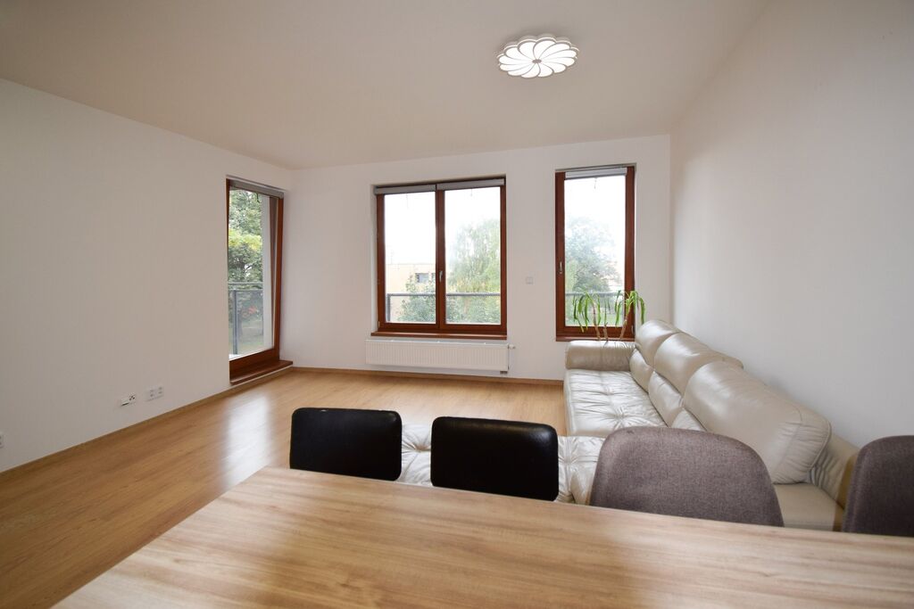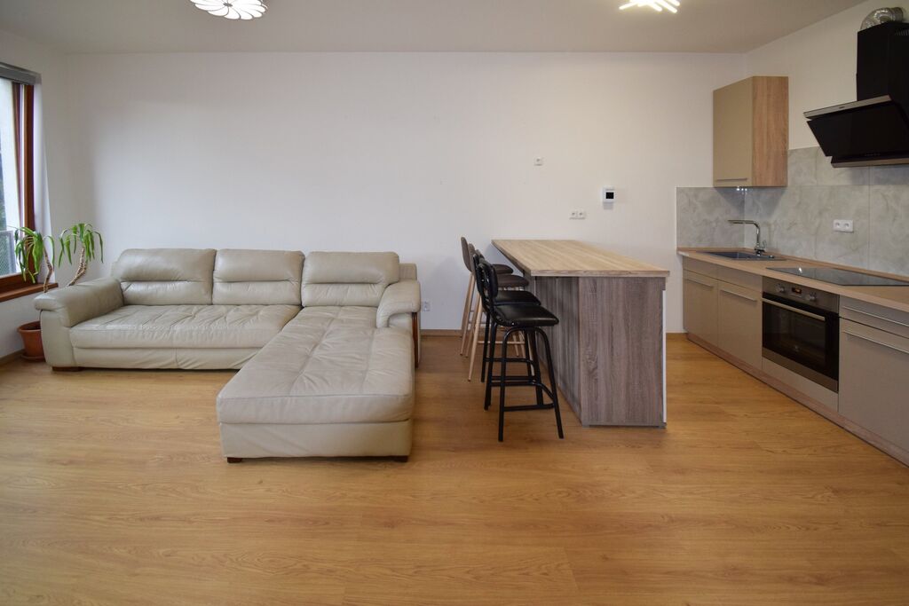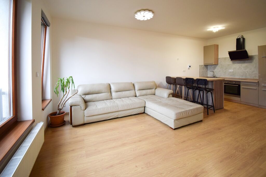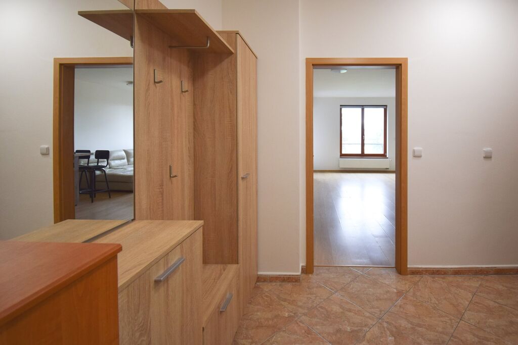 Byt disponuje předsíní, 2 pokoji, kuchyňským koutem, samostatným wc a koupelnou s vanou i sprchovým koutem. K bytu náleží lodžie a sklepní jednotka. Byt se nabízí částečně vybavený, kuchyňská linka je součástí.