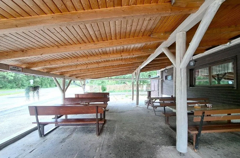 Součástí objektu je pět pokojů, každý s vlastním sociálním zařízením (sprcha/vana, umyvadlo, WC), což poskytuje dostatek soukromí i pro větší rodinu či hosty. K dispozici je také venkovní zastřešené posezení, kůlna, původní chatky a bufet.