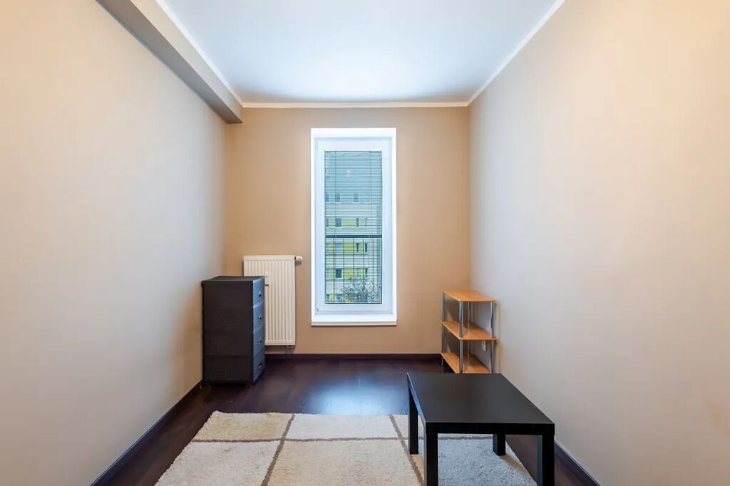 V bytě je velká předsíň s věšákovou stěnou a pračkou, koupelna s rohovou vanou a umyvadlem (otopný žebřík, skříňka, zrcadlo, ventilátor, místo pro pračku), samostatné WC s bidetovou sprchou a umyvadlem, útulná ložnice s vestavěnou skříní, pěkný obývací pokoj s jídelním koutem a moderní kuchyňskou linkou na míru. Kuchyň je plně vybavena elektrickými spotřebiči - el. trouba, myčka, sklokeramická varná deska, digestoř, vestavěná lednice s mrazákem, MW, kávovar, dřez). V pokoji stůl + 2 židle, skříňka. Z obývacího pokoje je vstup na balkon (stůl +2 židle, úložný box).