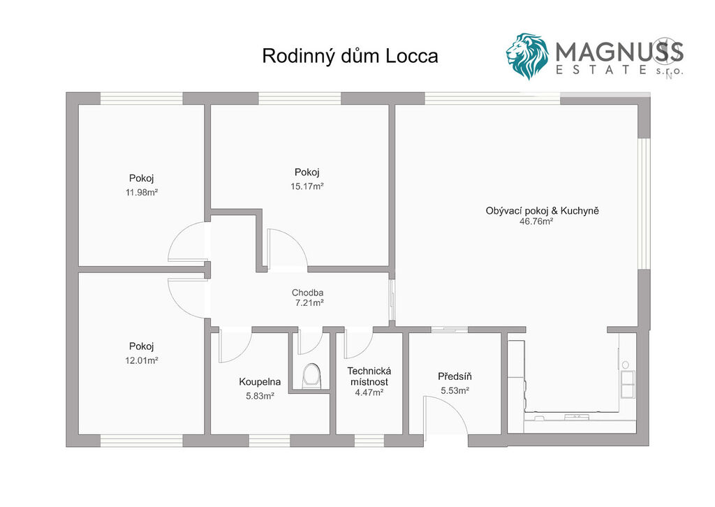 prostorný obývací pokoj s kuchyňským koutem (přirozené centrum rodinného života),