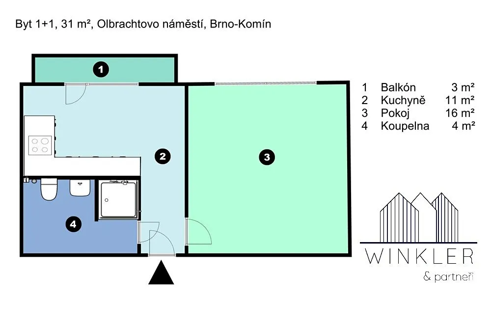 K dlouhodobému pronájmu nabízíme částečně zařízený byt o dispozici 1+1, na Olbrachtově náměstí, v klidné lokalitě, v obklopení zeleně, v Brně-Komíně.