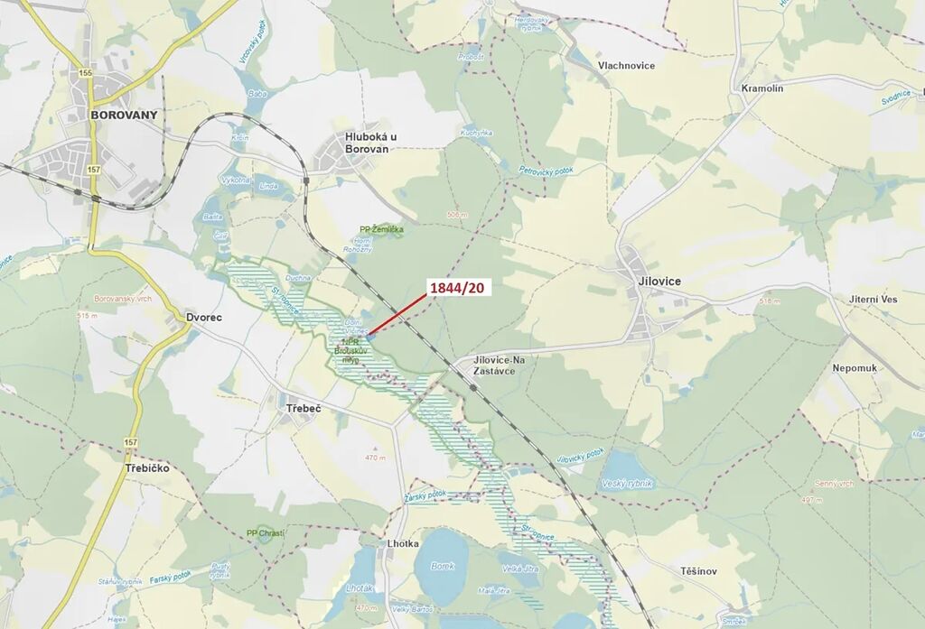 Lesní pozemek o výměře 5 752 m2, parcelní číslo 1844/20, podíl 1/1, katastrální území Jílovice u Trhových Svinů, obec Jílovice, obec s rozšířenou působností Trhové Sviny, okres České Budějovice, Jihočeský kraj.