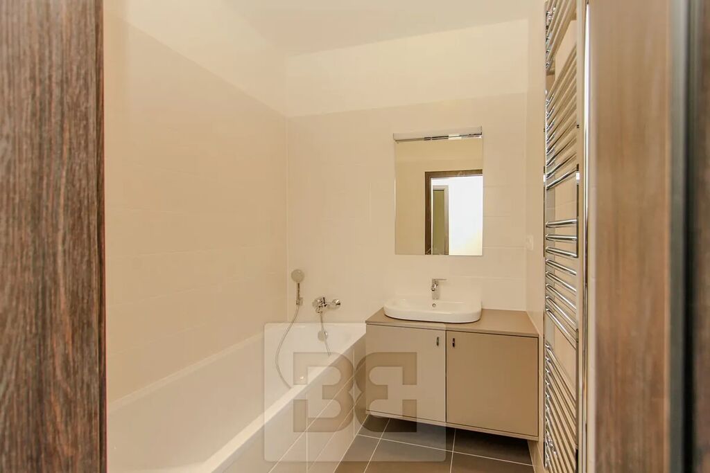 Exkluzivně nabízíme k dlouhodobému pronájmu krásný byt 2+kk s lodžií v novostavbě na Praze 8, v ulici U Mlýnského kanálu. Světlý a zajímavě řešený byt o velikosti 53 m2 s lodžií 5 m2 se nachází ve 2. podlaží moderního developerského projektu Port Karolina. Byt se skládá z obývacího pokoje s kuchyňským koutem, ložnice, předsíně, koupelny s vanou, oddělené WC, komory na pračku a sušičku. V bytě nainstalována kuchyňská linka se spotřebiči (myčka, lednice s mrazákem, sklokeramická varná deska, trouba, digestoř). Dostatek úložného prostoru zajišťují vestavné skříně v předsíni a ložnici. Podlahy - kvalitní laminát a dlažba. Vybavení bytu lze odkoupit za zvýhodněnou cenu.