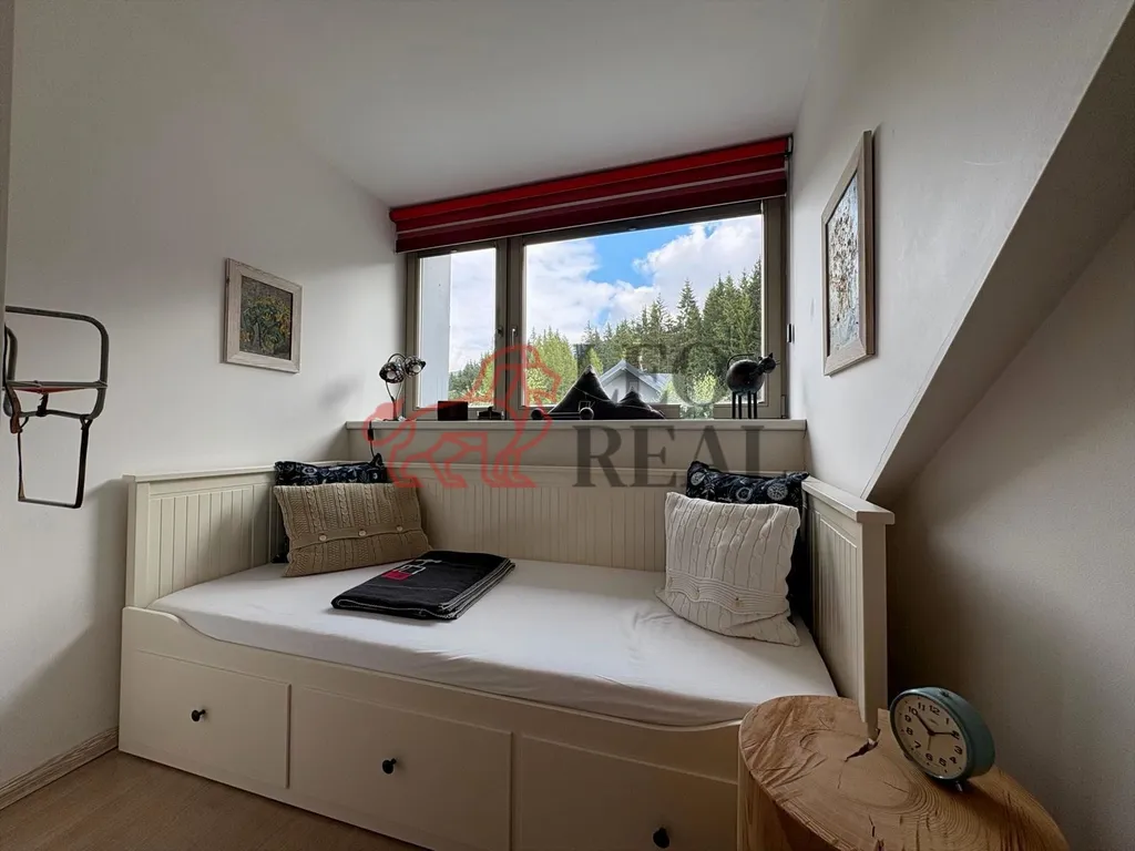 Předmětem prodeje je stylově zařízený mezonetový byt o dispozici 2+kk s velikostí podlahové plochy 77 m2. Bytový dům se nachází v klidně části Harrachova (Anenské Apartmány). Jedná se o strategické místo, které je nadosah centru Harrachova pouhých 15 minut pěšky, 3 minuty autem. Dispozice bytu je následující: po vstupu do bytu se ocitnete v přízemí bytu, kde se nachází plně zařízená koupelna se sprchovým koutem, umyvadlem a toaletou, dále pak prostor kk tedy kuchyně, jídelna, obývací pokoj a špajz. Následně po schodišti vystoupáte do 1. patra, kde je prostorná ložnice, galerie u schodiště je využita jako další prostor na spaní s rozkládací postelí, celkově lze v bytě ubytovat v obou patrech až 8 lidí. Byt je vytápěn dálkově a s provozem bytu jsou spojeny nízké měsíční náklady na provoz 6.000,- Kč/měsíc. Ze všech oken bytu je nádherný výhled do zeleně. Hned u domu se nachází dětské hřiště a první kopec s pomou, kde se učí lyžovat především děti. Tento byt je vhodný pro někoho, kdo hledá nenáročné bydlení na údržbu a miluje české hory. Nebo je možné byt koupit čistě s podnikatelským záměrem a pronajímat ho po celý rok s % ročním výnosem. Cesta z Prahy zabere většinou autem něco pod 2 hodiny klidnou jízdou. V Harrachově se nachází kompletní občanská vybavenost. Koupi nemovitosti je možné řešit hypotečním úvěrem, s kterým Vám rádi pomůžeme. pro více informací a prohlídky mě neváhejte kdykoliv kontaktovat.