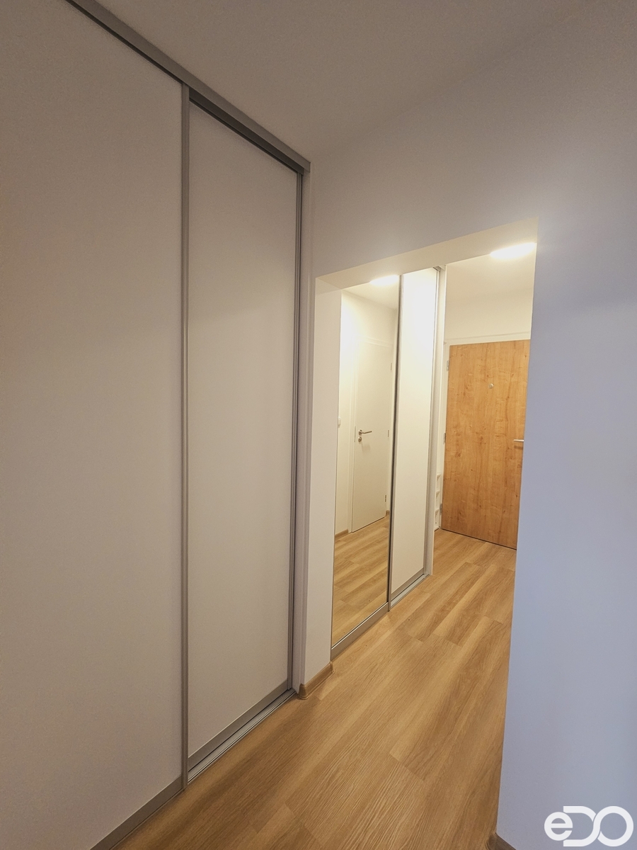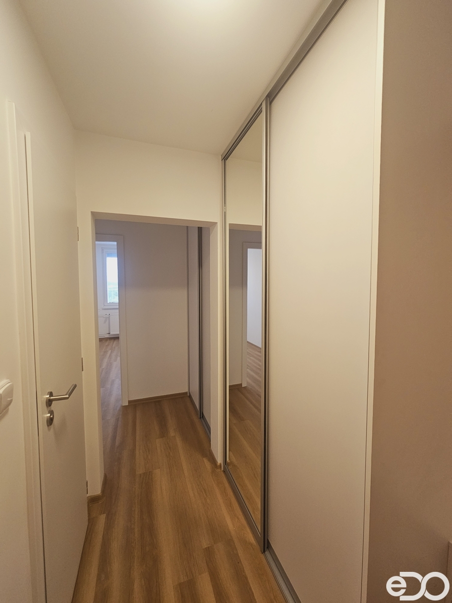 V zastoupení majitele bych Vám velmi rád nabídl k pronájmu aktuálně zrekonstruovanou bytovou jednotku o dispozici 2+kk a celkové ploše 43 m2, která se nachází v posledním patře revitalizovaného panelového domu s výtahem. Byt prošel opravdu rozsáhlou rekonstrukcí vč. rozvodů, jádra, podlah, kuchyňské linky s novými spotřebiči (lednice s mrazákem, digestoř, myčka, sklokeramická deska, trouba), nových vestavěných skříní, koupelny, která je s toaletou.