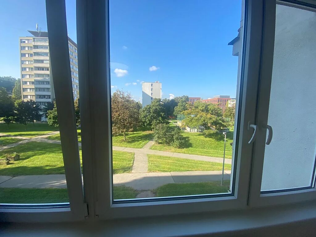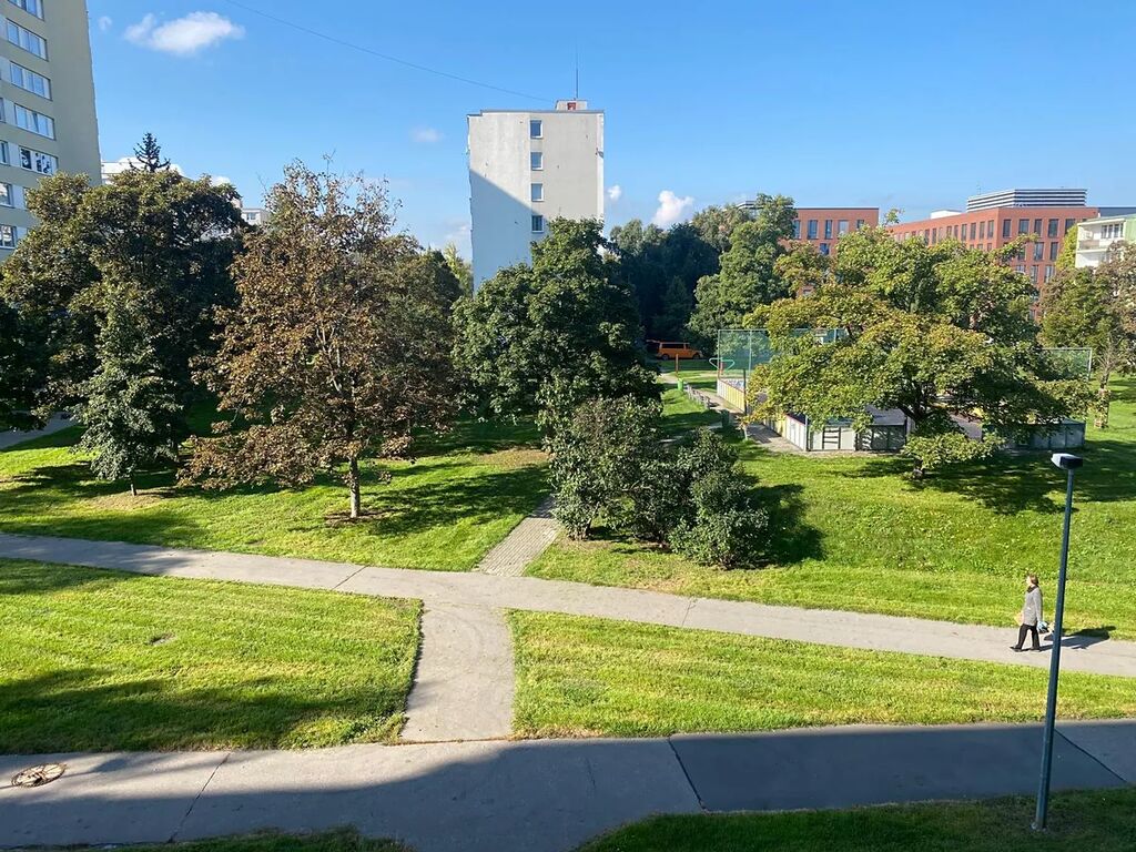 Byt 1+kk, 30 m2 se nachází ve 3.NP/z 8.NP, součástí bytu je komora, která je umístěna ve spojovací chodbě o patro výše, k užívání pro tři byty je lodžie (7 m2) naproti bytu. Byt prošel náročnou kompletní rekonstrukcí dle dnešních moderních trendů, bylo vyměněno a obnoveno úplně vše (veškeré rozvody - voda a odpady v plastu, elektrorozvody v mědi s certifikací, rozveden internet, stropní bodová světla, stropní LED světla na dálkové ovládání, nový topný radiátor, plast. okna, interiérové dveře v pojízdné liště, vstupní dveře, komplet přestavěna koupelna a WC, podlahy - dlažba a vinil, nová kuchyňská linka s vestavěnými elektrospotřebiči). Dispozice bytu: vstupní chodba, vpravo vybudován prostor pro velkou vestavěnou šatní skříň, vlevo vstup do koupelny dveřmi v pojízdné liště, zde je umístěn sprchový kout, WC, skříňka se zapuštěným umyvadlem a zrcadlem, vedle příprava pro pračku. Z předsíně vstupujeme do velkého prostoru pokoje, který je rozdělen na zónu spací a obývací, kolem dokola zásuvky + internet. připojení. Pokoj je otevřen do kuchyně, která je vybavena novou kuchyňskou linkou v šedobílém designu se zabudovanými elektrospotřebiči a LED podsvícením. Byt je atypický tím, že přes celý pokoj i kuchyň jsou instalována okna směrem na JZ, tudíž je byt velmi světlý. Promyšlený interiérový potencionál uspokojí i nejnáročnější zájemce. Byt je laděn do světlých tónů, které mu dávají vzdušnost, neboť bílá linie prostor opticky rozšiřuje. Úkolem bylo vytvořit novou koncepci zcela vybydleného bytu na komfortní, což se podařilo. Měs. poplatky 3 205 Kč (FO 690 Kč, správa 168 Kč, vodné stočné 400 Kč, teplá voda 780 Kč, popelnice 100 Kč, spol. el. 25 Kč, pojištění 30 Kč, odměna v. 180 Kč, teplo 601 Kč, úklid 85 Kč, výtah 70 Kč, provoz 76 Kč). Parkování v modrých rezidenčních zónách u domu. Byt je vhodný nejen k vlastnímu bydlení, ale rovněž i k lukrativnímu pronájmu.