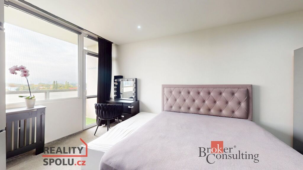 Byt o dispozici 3+1 se nachází v 9. nadzemním podlaží udržovaného panelového domu s výtahem. Díky své poloze nabízí nádherný panoramatický výhled na město i okolní zeleň, dostatek denního světla a příjemné soukromí.