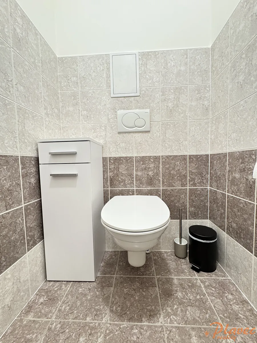 Díky oddělenému místu na spaní lze byt využívat částečně jako 2+kk (ložnice zvlášť a obývací pokoj s kuchyní zvlášť). Byt se nachází v 1. patře cihlového domu bez výtahu. Vybavení: kuchyňská linka s elektrickou troubou, lednicí a myčkou, dále jídelní stůl se 2 židlemi a vestavěná skříň v chodbě. V případě zájmu je možné si odkoupit úplně novou pračku se zárukou. Vytápění zajišťuje elektrický kotel v bytě a ohřev vody elektrický bojler.