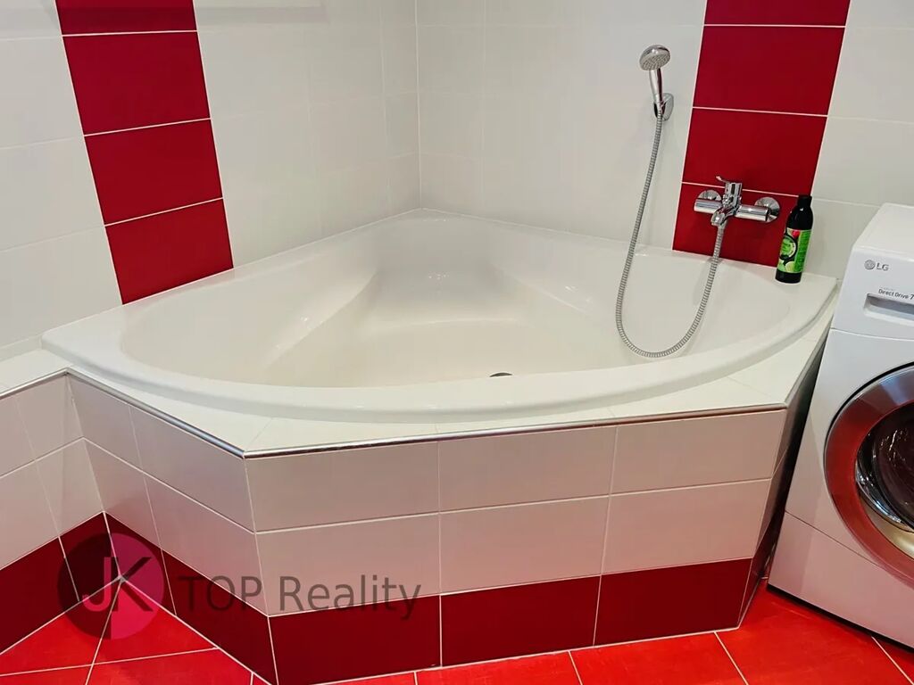 Exkluzivně nabízíme k pronájmu krásný byt s dispozicí 1+kk a rozloze 39,3 m2 + lodžie 15,2 m2 s nádherným výhledem, nacházející se v posledním 5. patře novostavby s výtahem. Byt je světlý, nízkoenergetický a orientovaný na jih. Byt je kompletně vybavený – nová kuchyňská linka s vestavěnými spotřebiči (sklokeramická deska, trouba, digestoř, myčka na nádobí, lednice s mrazákem). V obývacím pokoji jídelní stůl se židlemi, skříně, komody, postel, sofa, pracovní stůl se židlemi, TV stolek a TV. V Předsíni vestavěná šatní skříň, dále samostatná šatní skříň, botník, komoda. V koupelně rohová vana, umyvadlo se zrcadlem, WC a pračka. V bytě se nachází komora, vybavena regály. Rozměry místností: obývací pokoj + kk 24,1 m2, předsíň 7,7 m2, koupelna s WC 5,1 m2, komora 2,4 m2, lodžie 15,2 m2. Atraktivní lokalita s dobrou dostupností do centra města a s veškerou občanskou vybaveností v místě – škola, školka, restaurace, obchody aj. Výborná dostupnost MHD – 3 busem na metro „B“ Stodůlky nebo 8 min na metro „B“ Luka. Volné ihned. V případě zájmu kontaktujte realitního makléře.