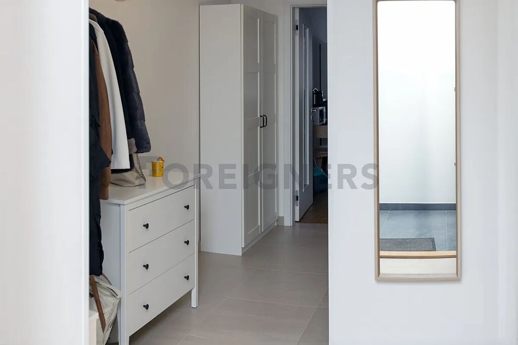 Tento světlý byt je nabízen plně zařízený v moderním stylu, kde majitelé mysleli doslova na každý detail tak, aby se nájemníci cítili nejvíce komfortně. Ve vstupní chodbě se nachází vestavěná skříň, botník s věšákem a skříň se šuplíky. V koupelně je poté sprchový kout, toaleta, pračka, topný žebřík, poličky a umyvadlo se zrcadlem a úložným prostorem pod umyvadlo. V hlavním pokoji se v obývací části nachází dvojlůžko, skříňka pod Tv + TV, knihovna, malá sedací souprava s konferenčním stolkem. Kuchyňská část je poté vybavena jídelním stolem se 4 židlemi, mikrovlnnou troubou, úložnou skříní, myčkou na nádobí, lednicí, sklokeramickým vařičem a elektrickou troubou. V kuchyni se také nachází veškeré základní kuchyňské vybavení.
