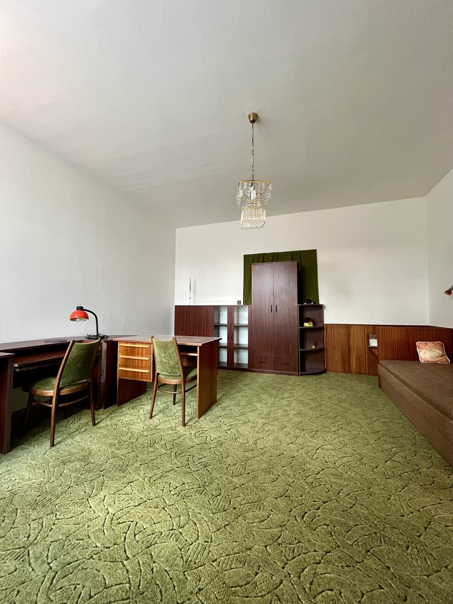 V jednom z neprůchozích pokojů najdeme kompletně vybavenou ložnici, od šatních skříní s manželskou postelí s rošty a matracemi, nočními stolky, osvětlením.