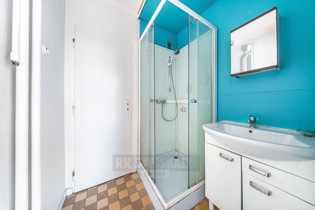 Srdcem bytu je světlá kuchyně s dostatkem místa pro jídelní kout. Dominantou je prosklená stěna vedoucí na balkon orientovaný na jih, který zajišťuje nejen skvělé prosvětlení interiéru, ale i příjemné ranní posezení s krásným výhledem. Za kuchyní se nachází koupelna s toaletou, chytře oddělená pro větší soukromí.