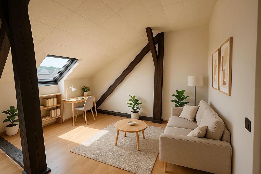 Podkroví: kuchyň, dva pokoje a sociální zařízení