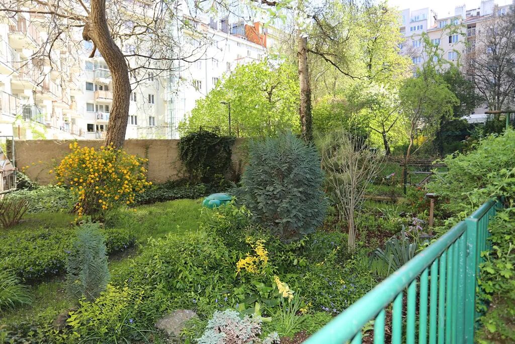 K domu patří upravená zahrada ve vnitrobloku, která slouží k venkovnímu posezení.