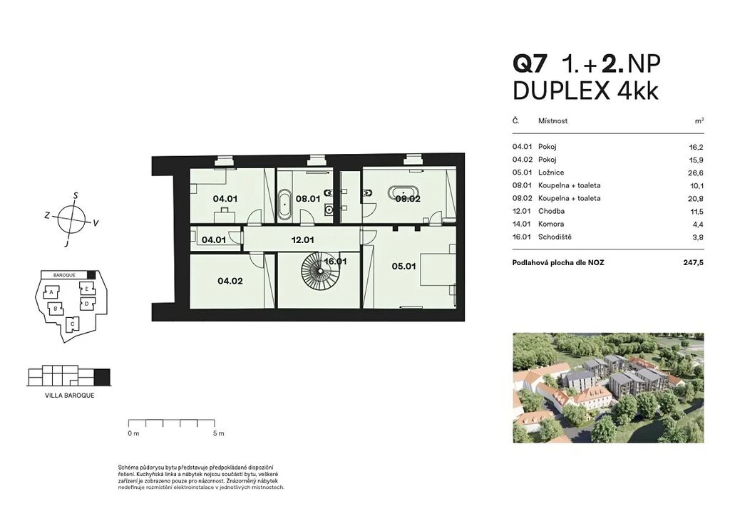 Byt s dispozicí 4+kk na prodej v lokalitě Praha 6 - Vokovice. Exkluzivní duplex s předzahrádkou, jež je součástí půvabné barokní budovy na prestižní adrese v pražských Vokovicích, v těsné blízkosti vodní nádrže Džbán a přírodní rezervace Divoká Šárka. Jedinečný byt s charakterem domu, který spojuje architektonickou minulost se současností a klid přírody s ruchem velkoměsta. Areál, spadající až do 15. století, obepíná památkově chráněná zeď, jež dala vzniknout unikátnímu privátnímu komplexu s upraveným parkem plným zeleně. Interiéry jsou vybaveny moderními a sofistikovanými technologiemi, které přinášejí nejvyšší standard pro život v 21. století. Součástí je podzemní garáž, 24hodinová recepce a kamerový systém. První podlaží tvoří prostorný obývací pokoj s kuchyňským koutem, jídelním prostorem a přístupem do předzahrádky, samostatná toaleta a schodiště. Ve druhém podlaží naleznete hlavní ložnici s en-suite koupelnou, dvě menší ložnice, společnou koupelnu, chodbu a komoru. Byt je dokončený ve stavu shell&core a poskytuje dostatek flexibility pro individuální úpravy a vnitřní uspořádání interiéru. Cena zahrnuje sklep a dvě garážová stání. Byt lze navíc drobnými stavebními úpravami rozdělit až na 3 samostatné byty, díky čemuž nabízí skvělou možnost investice. Výborná dostupnost, v okolí naleznete zastávky autobusů i tramvají a stanici metra linky A Nádraží Veleslavín se stejnojmenným vlakovým nádražím. Pražský okruh je vzdálený 5 minut jízdy autem, letiště Václava Havla 10 minut a centrum města 20 minut. Městskou hromadnou dopravou se do centra dostanete za půl hodiny. V okolí se nachází veškerá občanská vybavenost, školy a školky (včetně prestižní Prague British International School), úřady, obchody, restaurace a lékařské ordinace. Milovníci přírody ocení blízkost parků Divoká Šárka, Obora Hvězda a dějiště významné historické bitvy Bílá Hora. Pro kompletní informace o projektu a volných jednotkách nás neváhejte kontaktovat.
