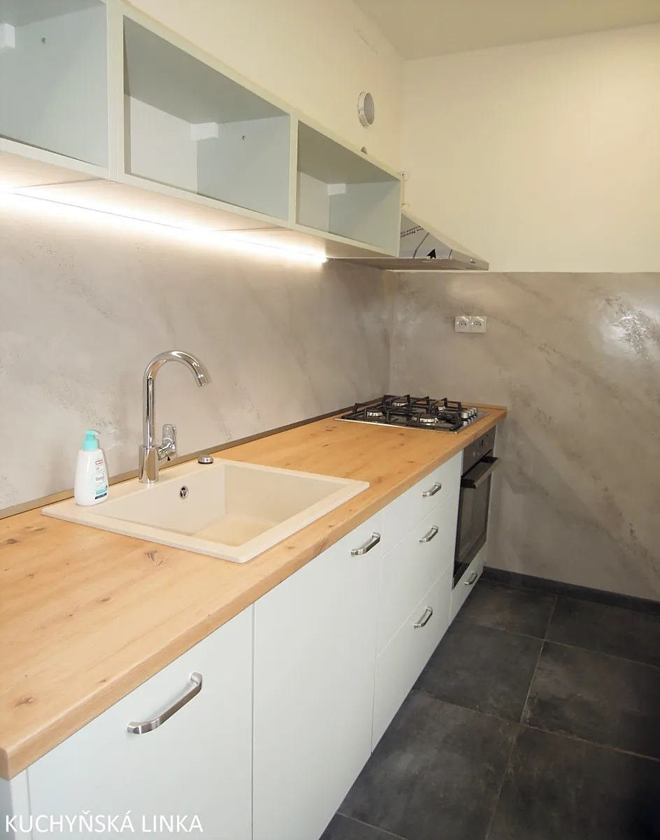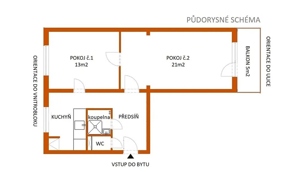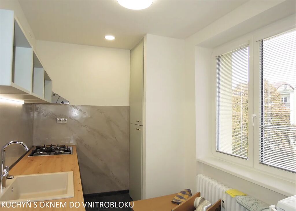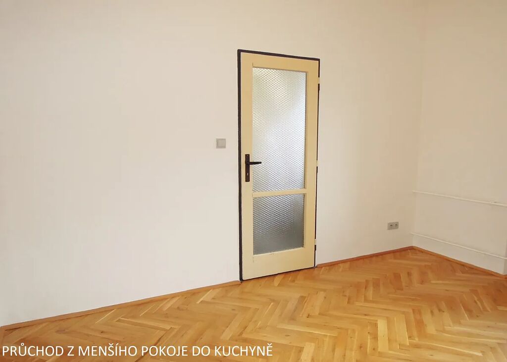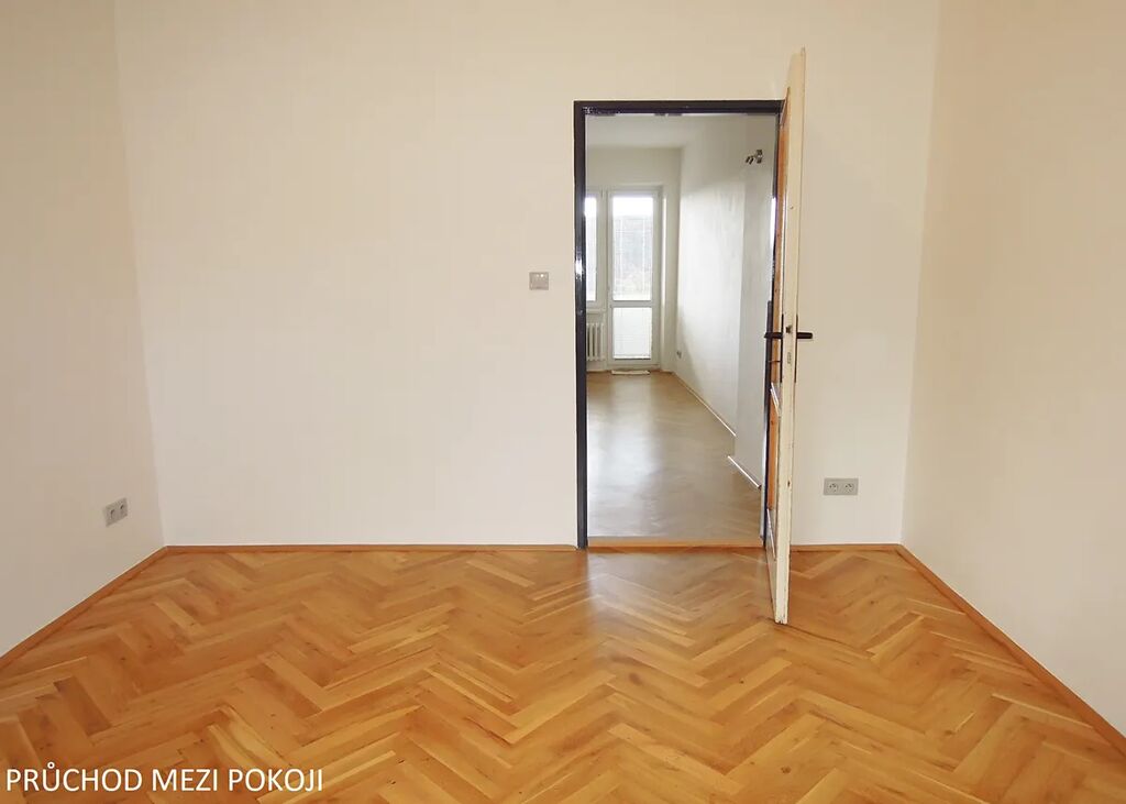 Byt má dva samostatné pokoje o výměrách cca 13m2 a 21m2, na větší pokoj navazuje balkon cca 5m2.Oba pokoje jsou nezařízené. Kuchyň je vybavená novou kuchyňskou linkou včetně varné desky, trouby, myčky, digestoře, je k dispozici nová velká lednice s mrazákem. (na samostatné fotce).
