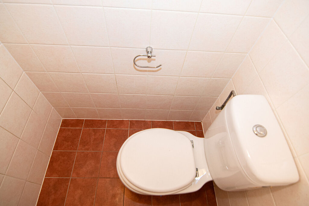 Koupelna disponuje vanou a pohodlně se zde umístí pračka i sušička. Toaleta je samostatná.