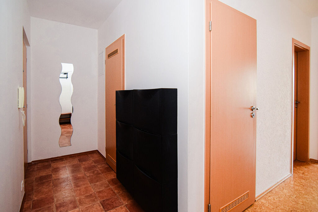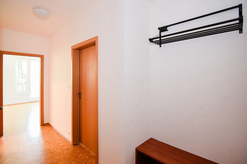 Dispozice bytu je praktická s dostatkem úložného prostoru. Při vstupu do bytu vás přivítá prostorná předsíň u které je praktická komora o výměře 3 m².