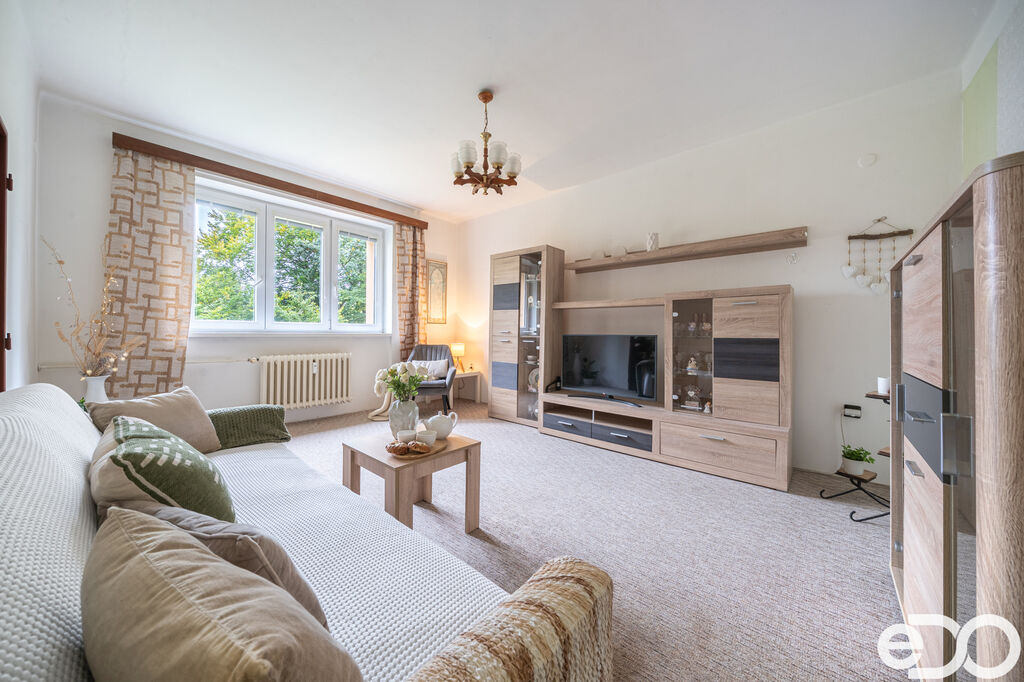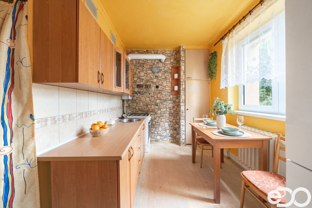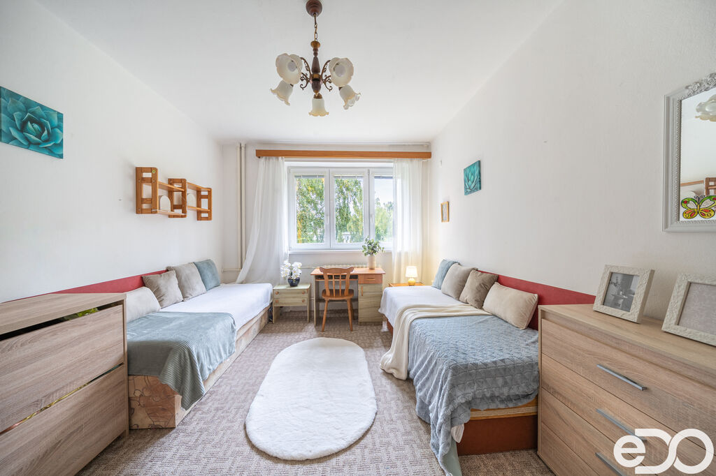 Součástí bytu jsou dva prostorné samostatné pokoje, které mohou sloužit jako dětský pokoj a ložnice. Dále v bytě najdeme kuchyň se spíží, koupelnu a samostatné WC, chodbu a předsíň. Součástí bytu je karma, která slouží k ohřevu teplé vody. Topení je ústřední, v kuchyni najdeme plynový sporák.