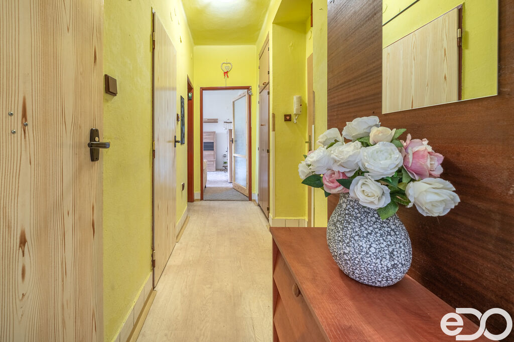 Byt o dispozici 2+1 má užitnou plochu 52,29 m2 + k tomu ještě sklep o velikosti 4,75 m2. Celková plocha bytu je tedy 57,04 m2.
