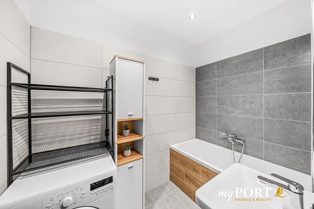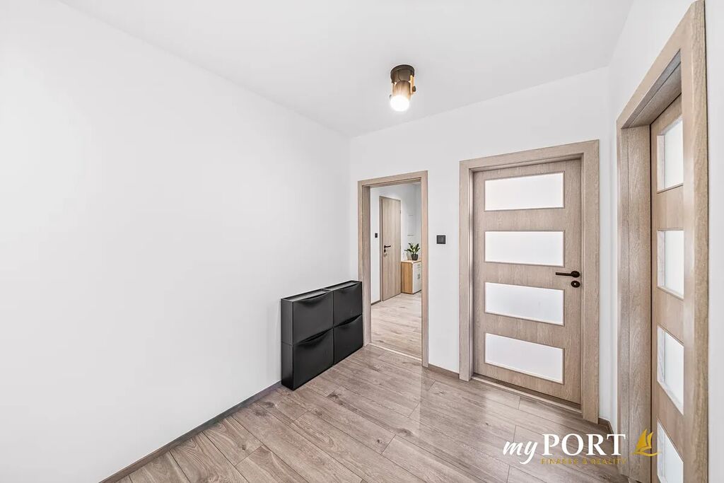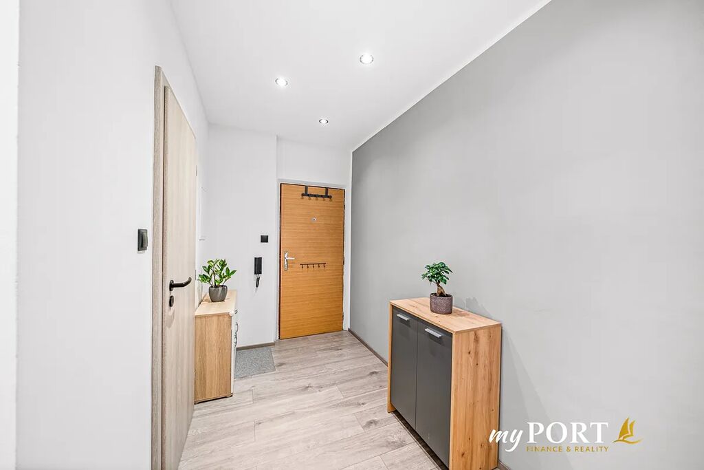 Dominantou bytu je stylová nástěnná dřevěná mapa světa dokreslující atmosféru bytu. V předsíni oceníte několik skříní a botníků. Nadšeni budete také z prostorné kuchyňské linky s barovým pultem, která poskytuje více než dostatek úložných prostor. Další úložné prostory nabízí potravinová skříň. V celém bytě jsou podlahy vinylové, vodě a světlu odolné. Díky nim je pak podlaha příjemně teplá. V koupelně a na samostatném WC naleznete velkoformátovou dlažbu.