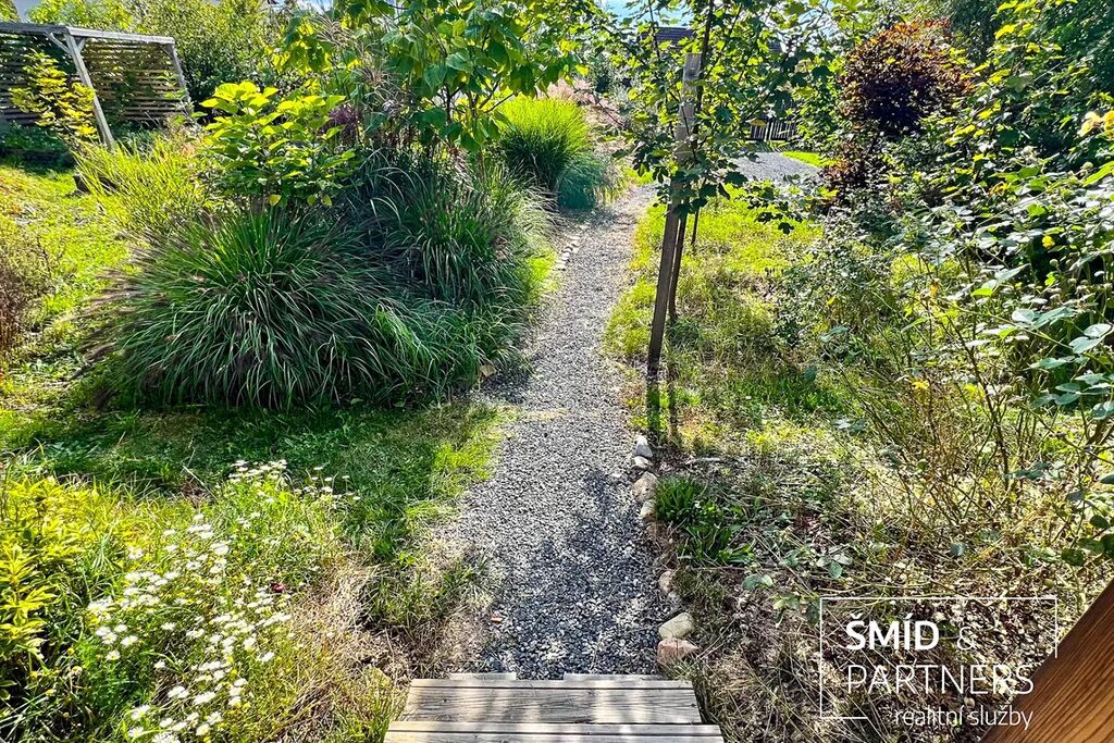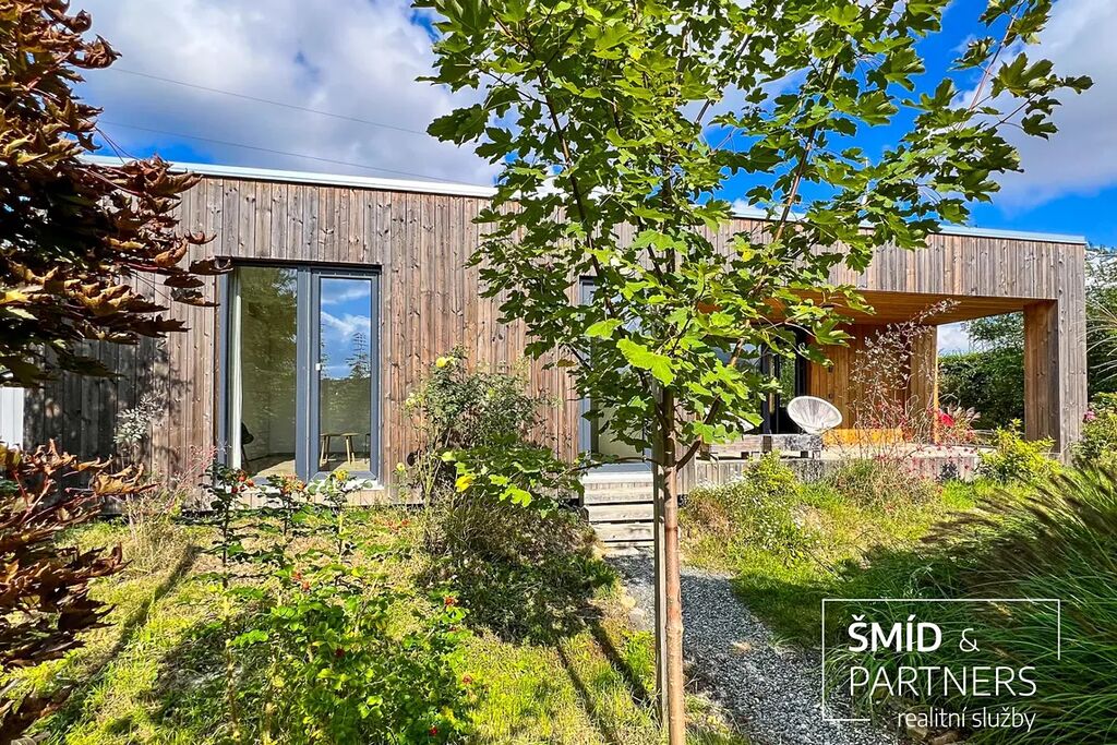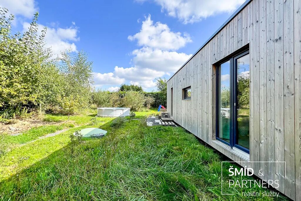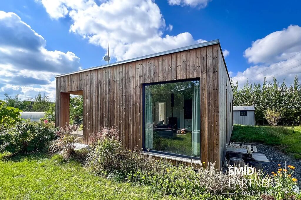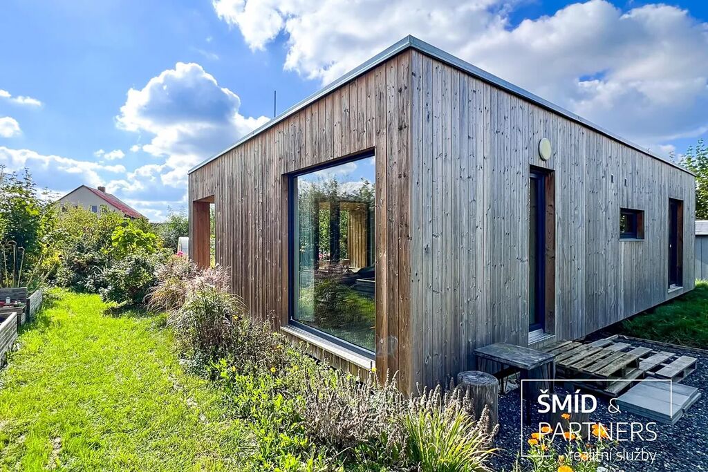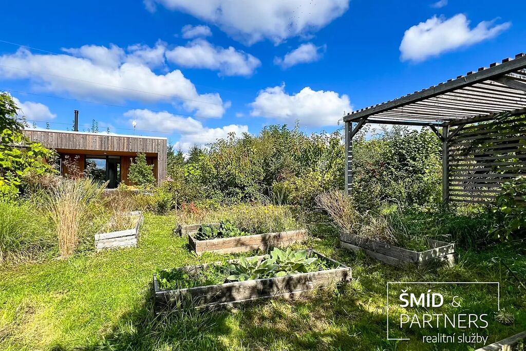 Naše kancelář zprostředkovává prodej velice atraktivního, moderního a ekologického domu v krásné oblasti Posázaví. Tento dům, postavený firmou Blokki specializující se na modulové a modulární stavby domů upcyklací lodních kontejnerů, se nachází v obci Užice - Čekánov v blízkém sousedství města Sázava. Čekánov je skvělé místo pro trávení aktivního života, k čemuž inspiruje okolní příroda s ikonickou řekou Sázavou, rozlehlými lesy a místy nabízejícími mnoho outdoorových aktivit. Pokud hledáte jen klidné útočiště, pak Vám rozlehlá, více než patnáct set metrů velká, zahrada obklopující dům nabídne notnou dávku soukromí a klidu. Zahrada je svou vlastní kapitolou. Je, jak již bylo zmíněno, opravdu prostorově bohatě dimenzovaná a pečlivě vybudovaná jako permakulturní na základě principů přírodních zahrad. Tento koncept zahrad využívá trvale udržitelný a samostatně se obnovující systém bez zásahů, jako jsou např. postřiky proti škůdcům nebo ruční plení. Přestože permakulturní zahrady jsou převážně užitkové, dokáží plnit i funkci okrasnou, čehož je tato zahrada jasným důkazem. Nespornou výhodou je její menší náročnost na údržbu a zálivku, velká druhová rozmanitost s velkým podílem rostlin, které dokáží majitele téměř celoročně zásobit výpěstky. Na zahradě se kromě skleníku, vyvýšených záhonů a plochy pro dětské hraní nachází také velmi praktická stavba dílny (ateliéru), která může sloužit skvěle i jako samostatná pracovna či případně domek pro hosty. Je zde zavedena elektřina a taktéž voda. K ukládání zahradního, sportovního či jiného vybavení jsou k dispozici další dva montované zahradní domky.