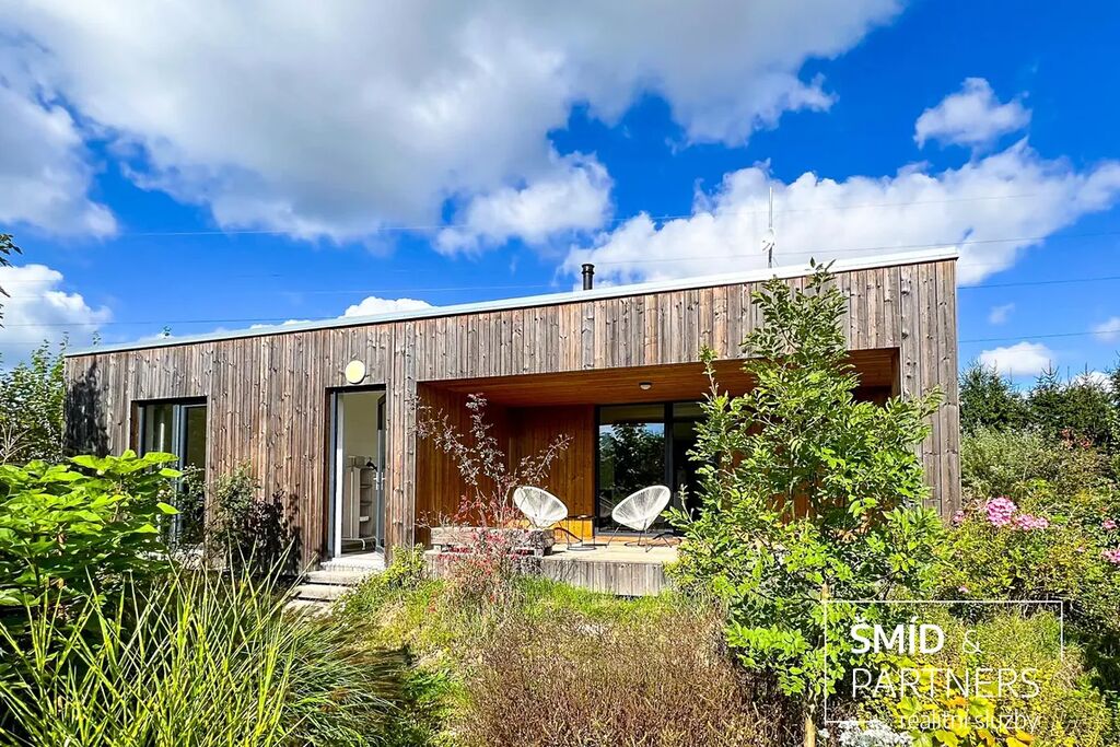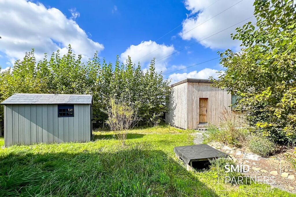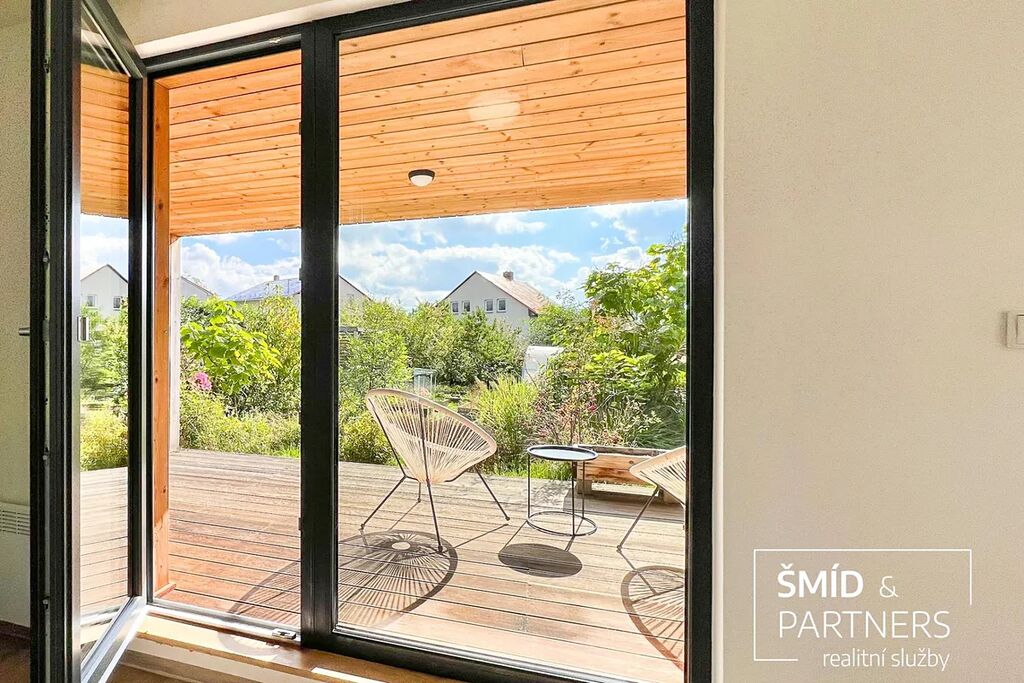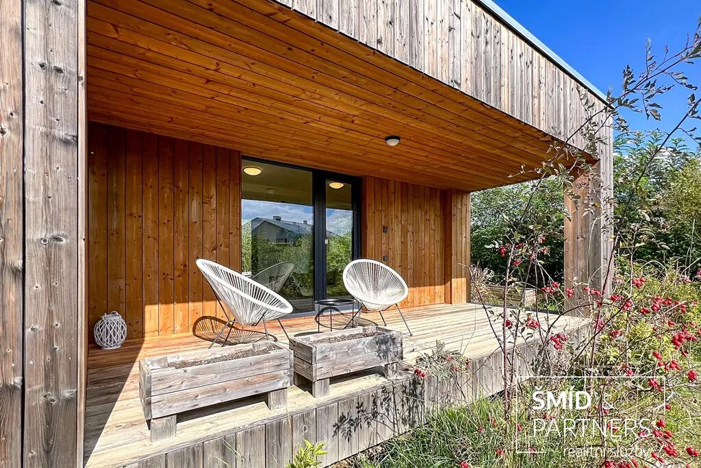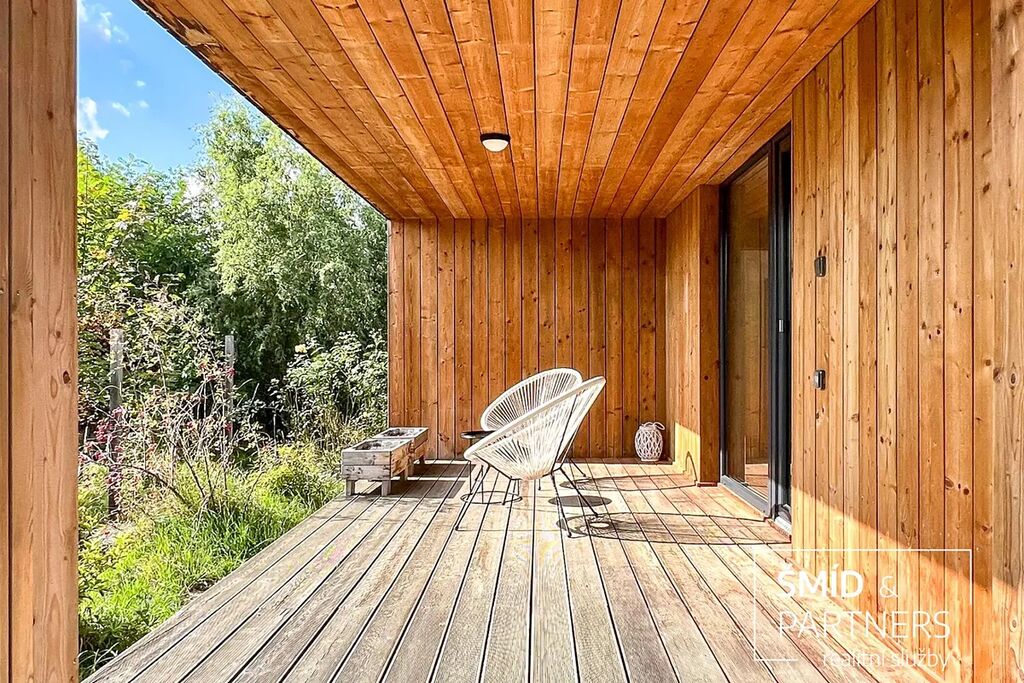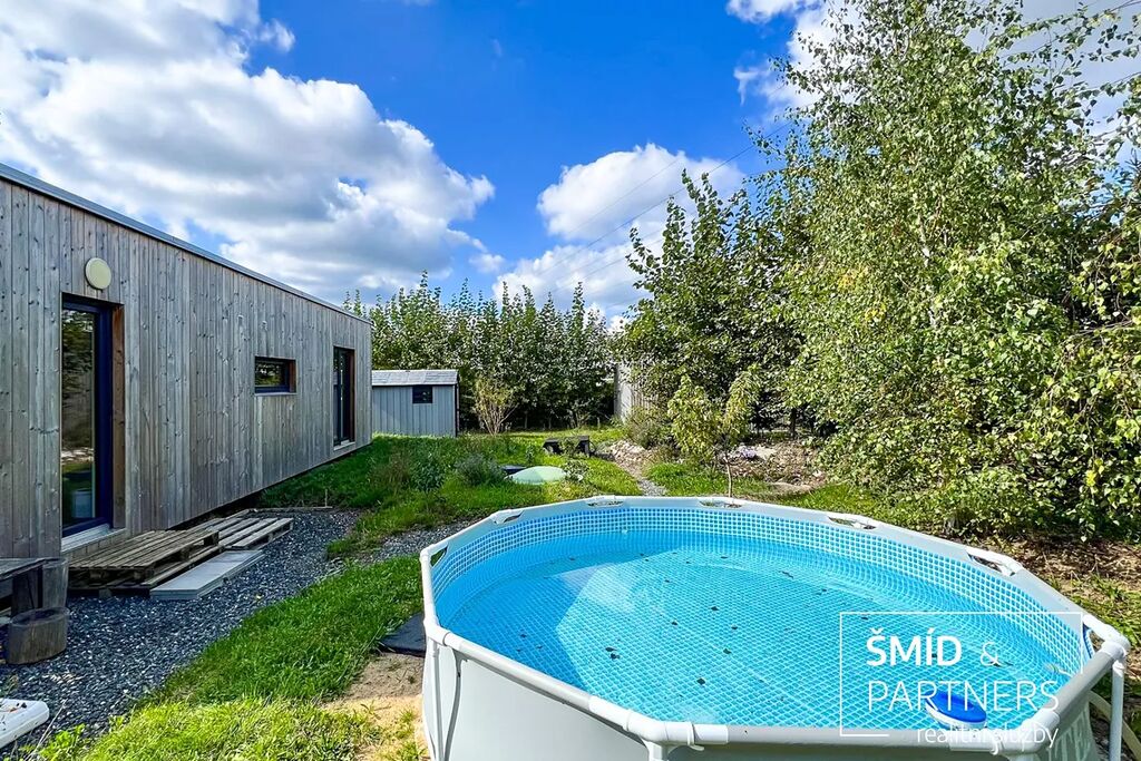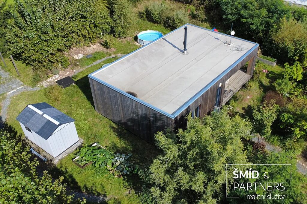 Naše kancelář zprostředkovává prodej velice atraktivního, moderního a ekologického domu v krásné oblasti Posázaví. Tento dům, postavený firmou Blokki specializující se na modulové a modulární stavby domů upcyklací lodních kontejnerů, se nachází v obci Užice - Čekánov v blízkém sousedství města Sázava. Čekánov je skvělé místo pro trávení aktivního života, k čemuž inspiruje okolní příroda s ikonickou řekou Sázavou, rozlehlými lesy a místy nabízejícími mnoho outdoorových aktivit. Pokud hledáte jen klidné útočiště, pak Vám rozlehlá, více než patnáct set metrů velká, zahrada obklopující dům nabídne notnou dávku soukromí a klidu. Zahrada je svou vlastní kapitolou. Je, jak již bylo zmíněno, opravdu prostorově bohatě dimenzovaná a pečlivě vybudovaná jako permakulturní na základě principů přírodních zahrad. Tento koncept zahrad využívá trvale udržitelný a samostatně se obnovující systém bez zásahů, jako jsou např. postřiky proti škůdcům nebo ruční plení. Přestože permakulturní zahrady jsou převážně užitkové, dokáží plnit i funkci okrasnou, čehož je tato zahrada jasným důkazem. Nespornou výhodou je její menší náročnost na údržbu a zálivku, velká druhová rozmanitost s velkým podílem rostlin, které dokáží majitele téměř celoročně zásobit výpěstky. Na zahradě se kromě skleníku, vyvýšených záhonů a plochy pro dětské hraní nachází také velmi praktická stavba dílny (ateliéru), která může sloužit skvěle i jako samostatná pracovna či případně domek pro hosty. Je zde zavedena elektřina a taktéž voda. K ukládání zahradního, sportovního či jiného vybavení jsou k dispozici další dva montované zahradní domky.